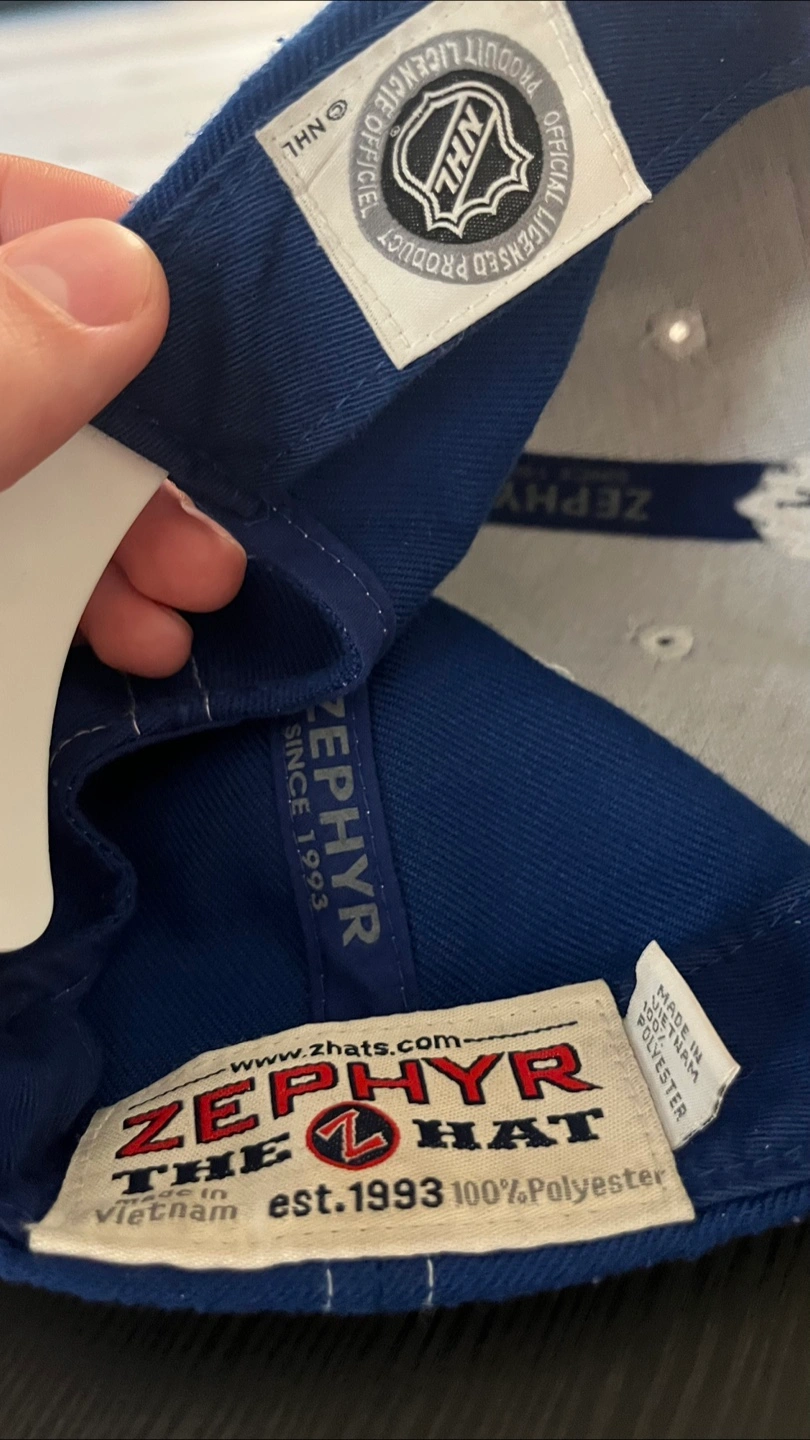 Selling a Toronto Maple Leafs hat made by Zephyr. It's in great shape and ready for a new home! The hat is made of 100% polyester and features the classic Maple Leafs logo. Perfect for showing your team spirit!