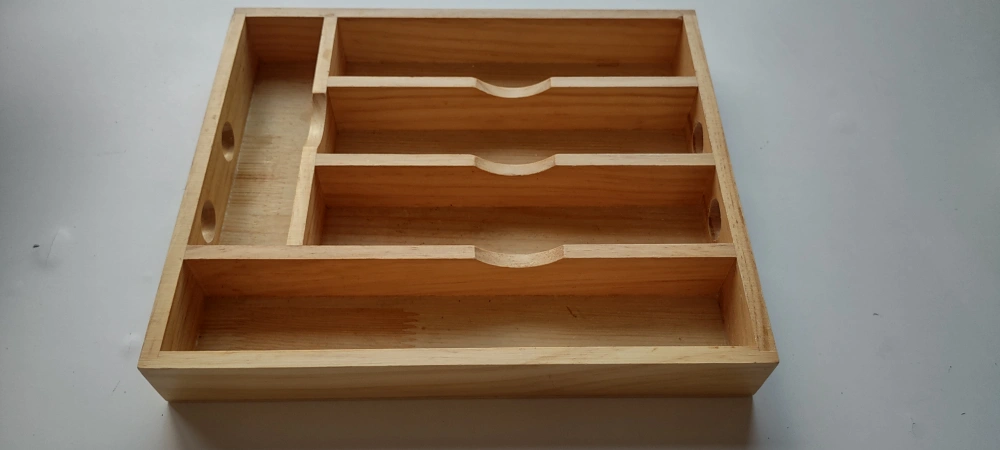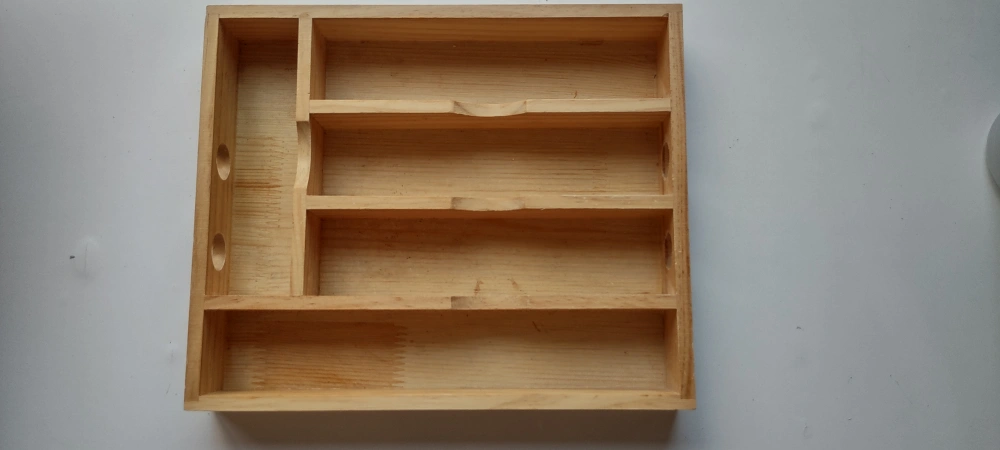 1000+Here's a wooden cutlery drawer organizer to keep your kitchen tidy! It's in great shape and ready to help you organize your silverware and cooking utensils