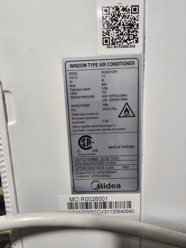 Selling a Midea window type u-shape smart inverter air conditioner. It featureswi-fi, auto, cool, echo, and fan modes. The unit also has energy-saving. It is 8,000 BTU.