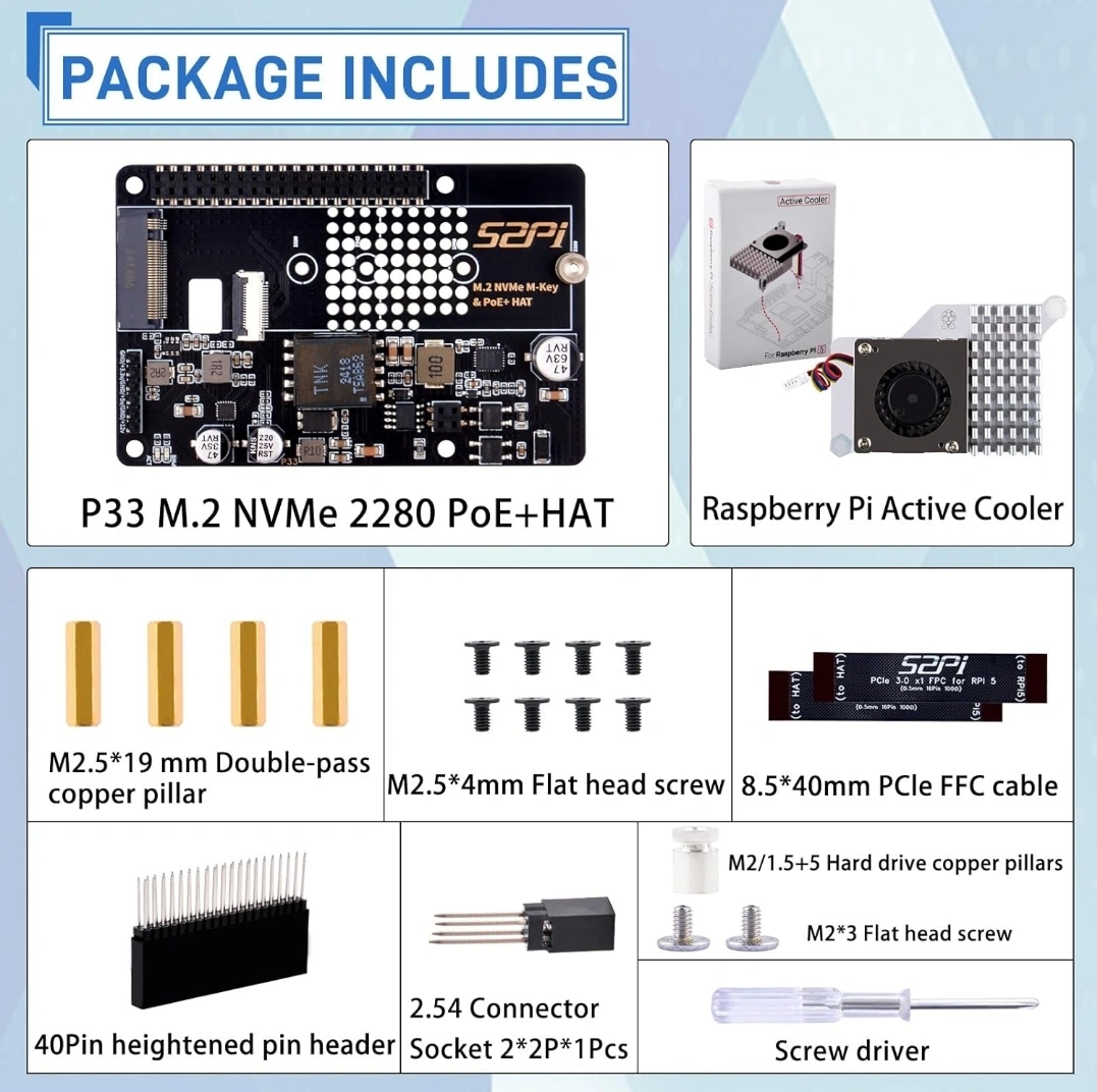 ✔️ Includes both M.2 NVMe PoE+ HAT + Active Cooler