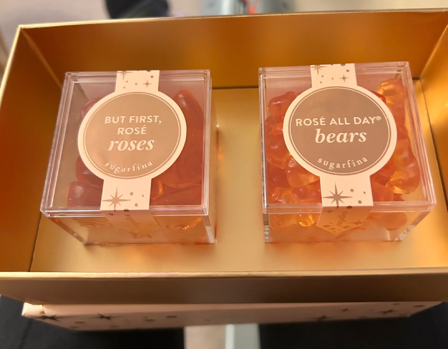 189Selling a Sugarfina Rosé All Day Candy Bento Box! It's a delightful collection of bonbons that includes 'But First, Rosé Roses' and 'Rosé All Day Bears'. Perfect partners in wine, these candies are ready to make your day a little sweeter. The box has a BIUB date of June 29, 2025, so you know they're fresh and ready to enjoy