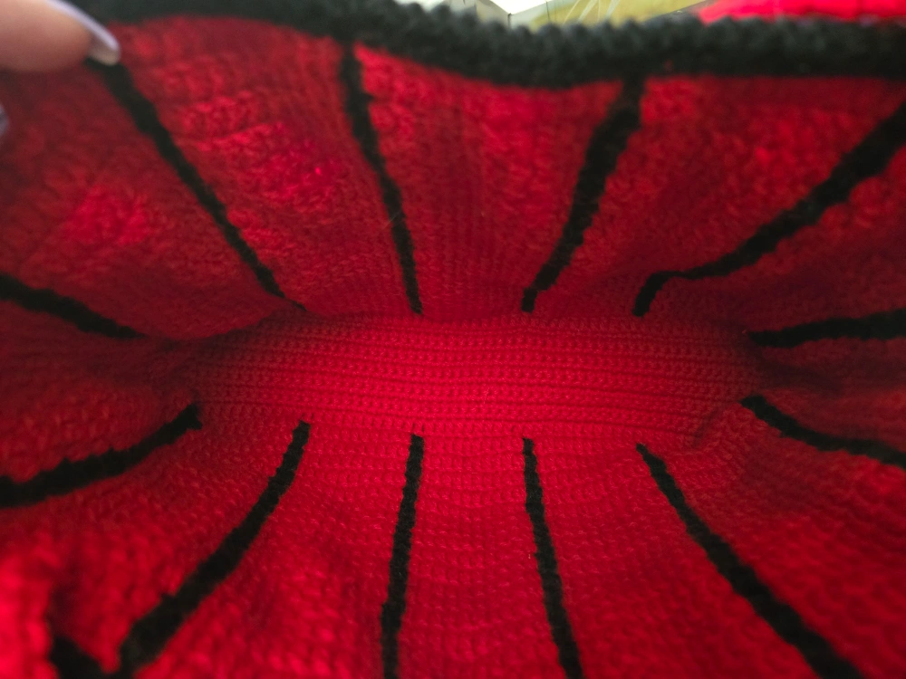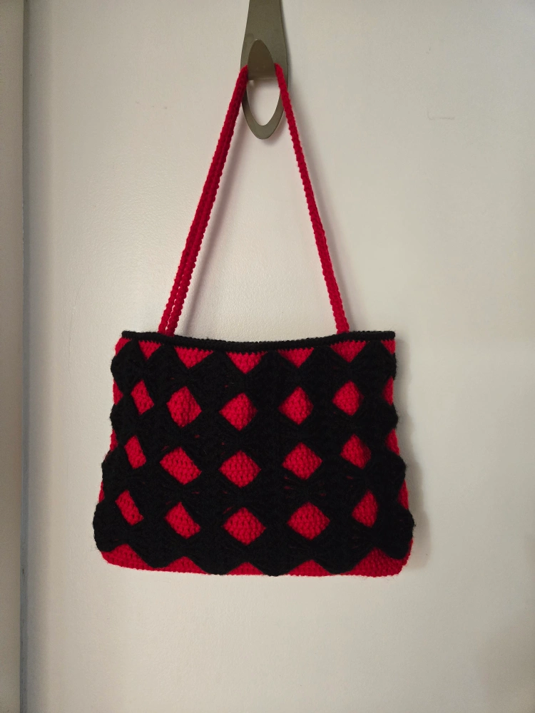 94Brand new, Handmade harlequin crochet bag Red and black colour Purse is 13 inches long X 9 inches tall X 2.5 inches wide