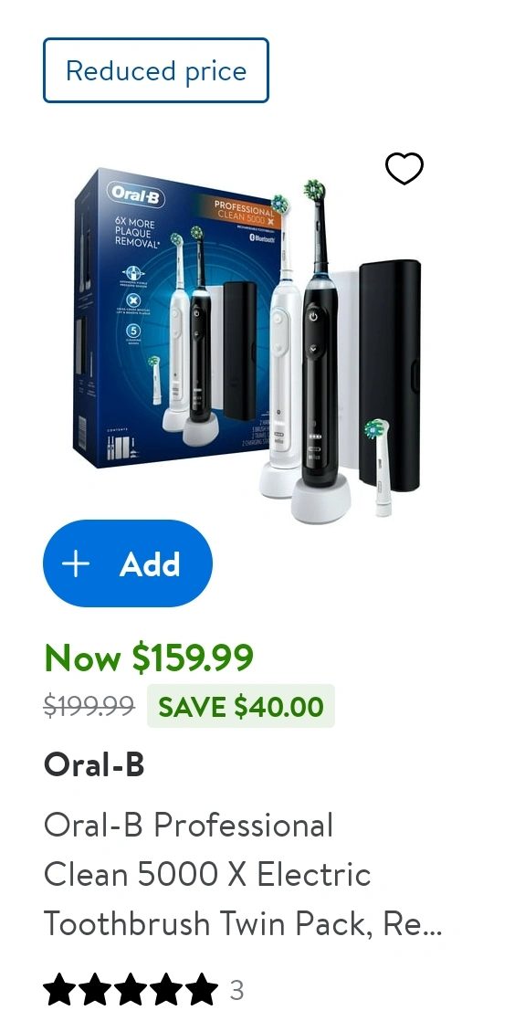 630Selling an BNIB (never used) Oral-B Professional Clean 5000 X electric toothbrush (White Color). It comes along with the box, charger and one brush head. This rechargeable toothbrush has Bluetooth connectivity and a visible pressure sensor to protect gums. It also features a 2-minute timer and 5 cleaning settings. Reason of sale - I brought a pack of two and want to sell one.