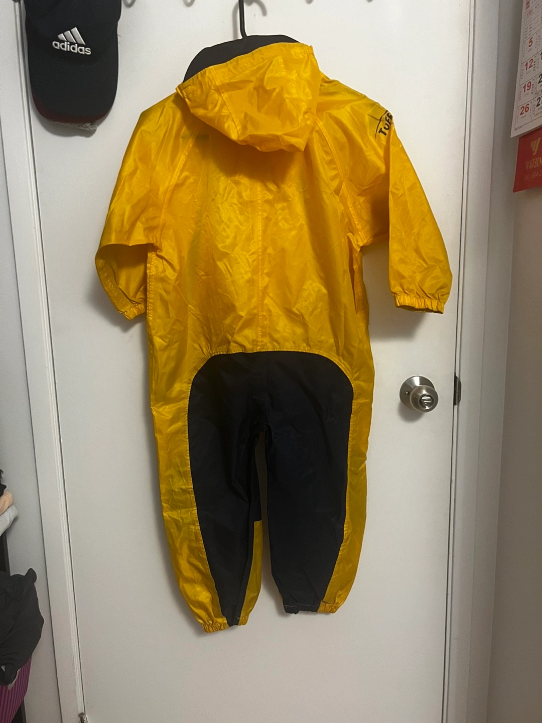 Selling a Tuffo Muddy Buddy rain suit in yellow and black! It's in great condition and perfect for keeping your little one dry during those rainy days. Size is 5T. Last few photos display a couple of pen marks but do not affect the function of the suit.