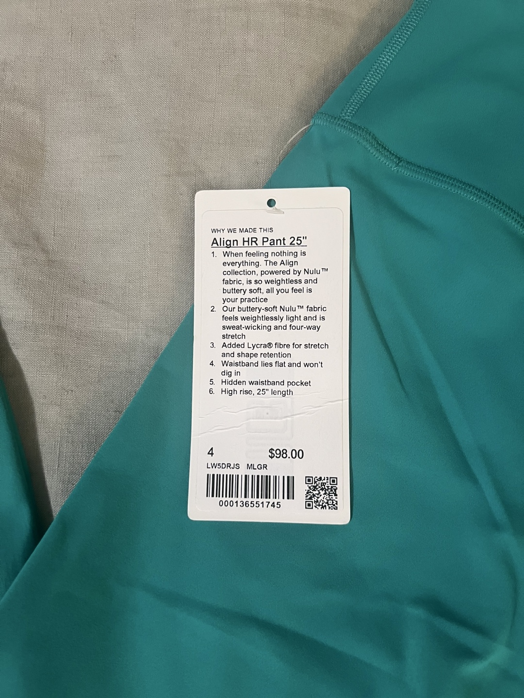 NWT Lululemon Align High-Rise Pant 25" - size 4