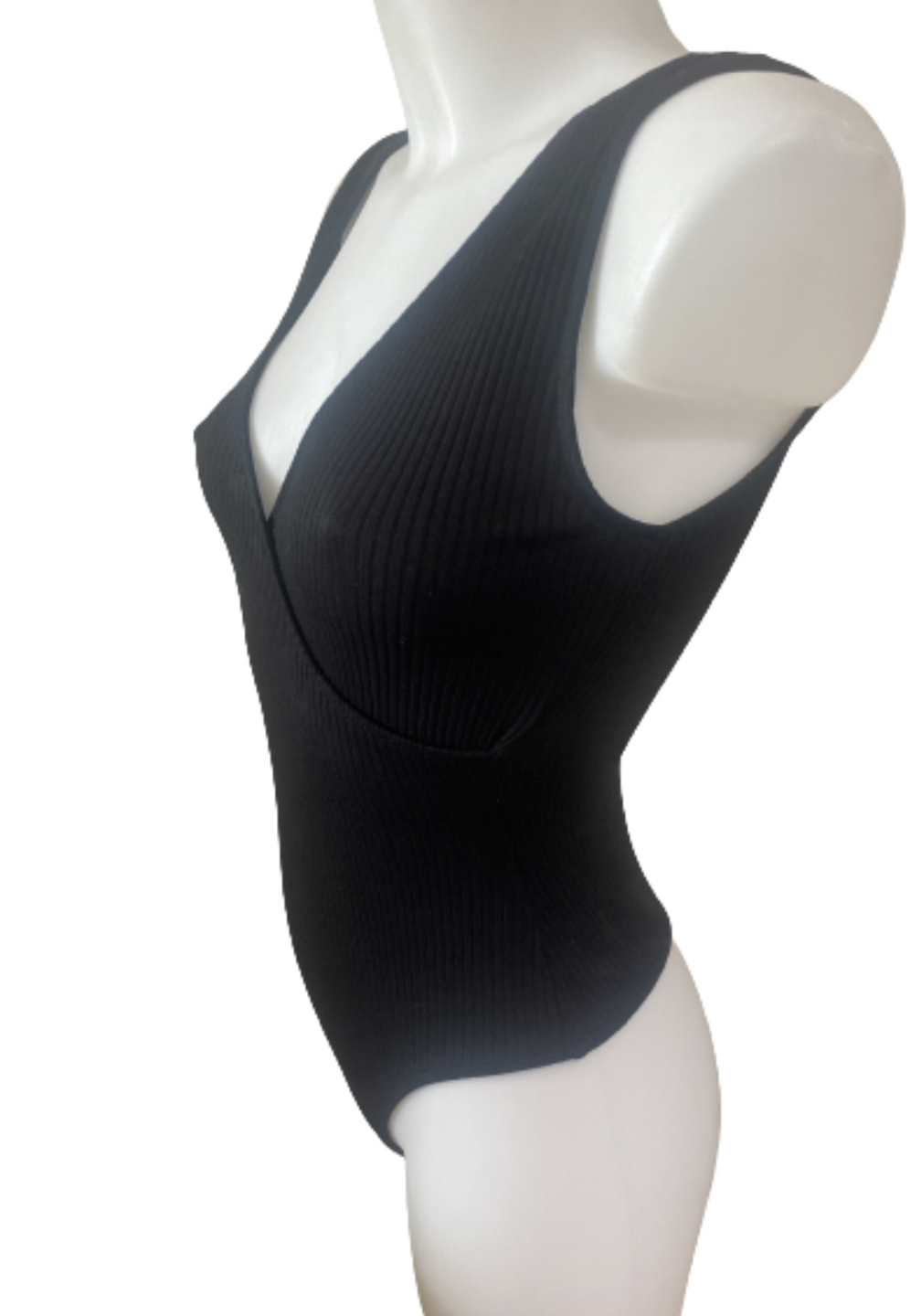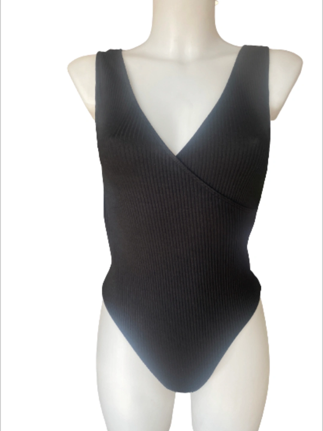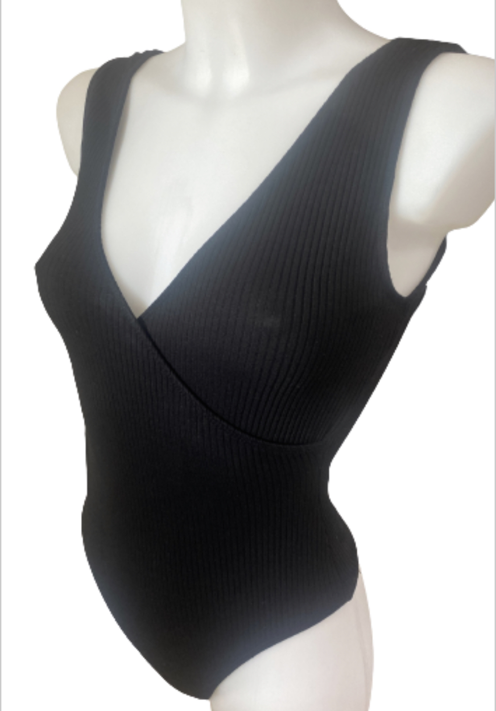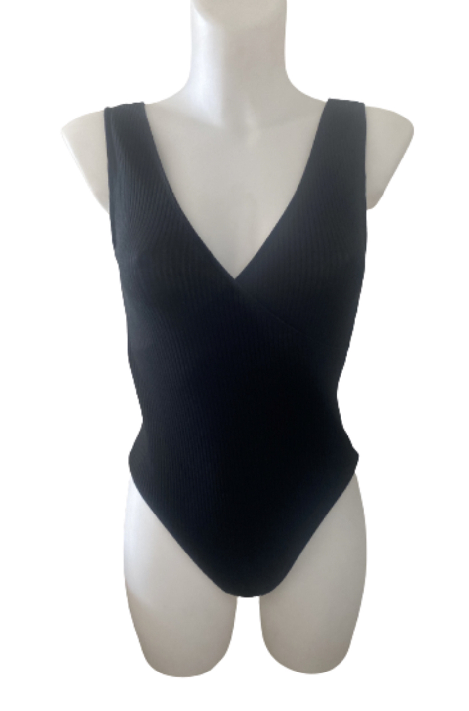 This bodysuit has a cross-over V-neck and thick, bra-friendly straps.