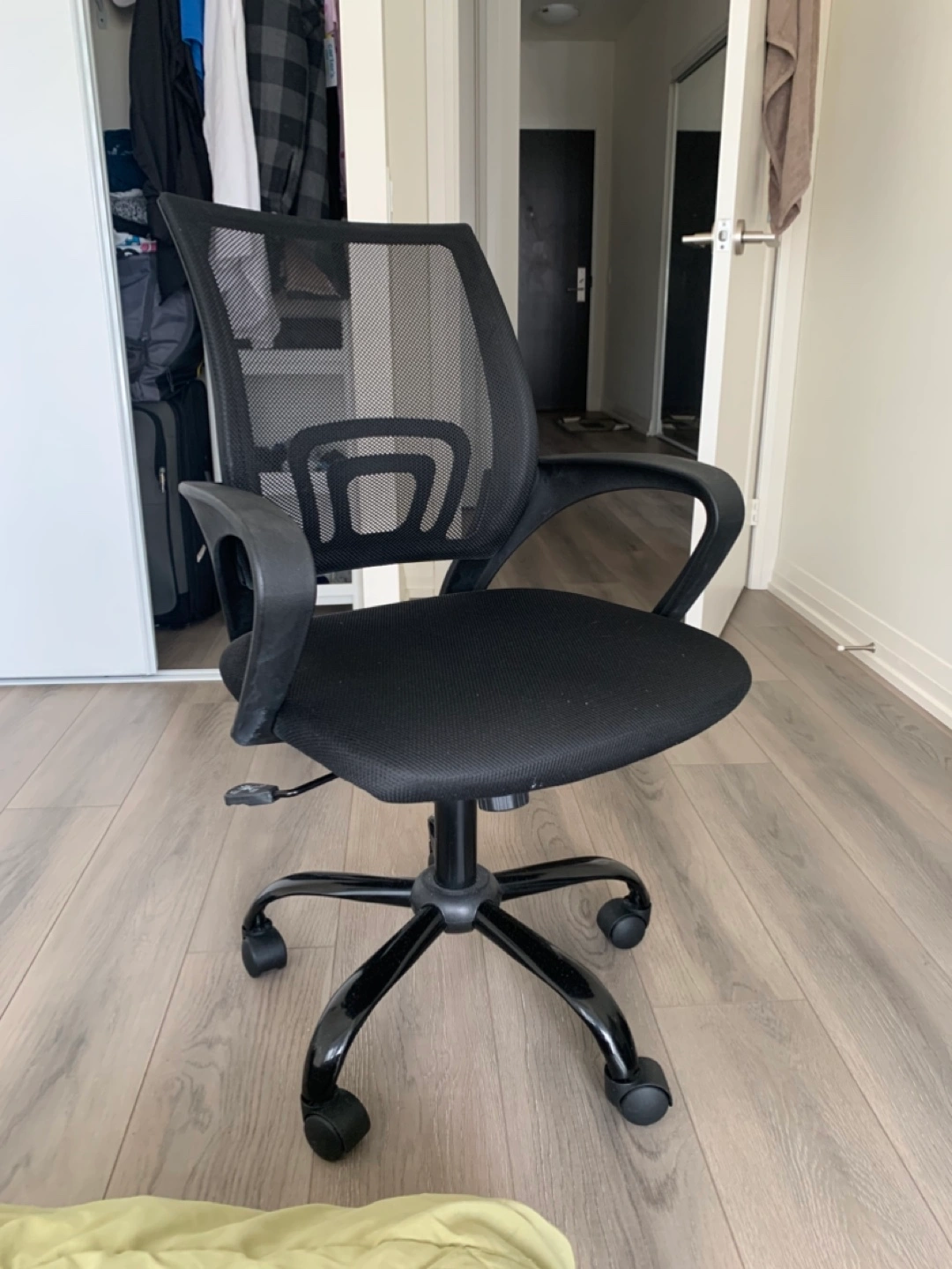 Selling a comfortable black mesh office chair. It's in good condition and perfect for your home office or study space. The mesh back provides great support and breathability, making it ideal for long hours of work or gaming