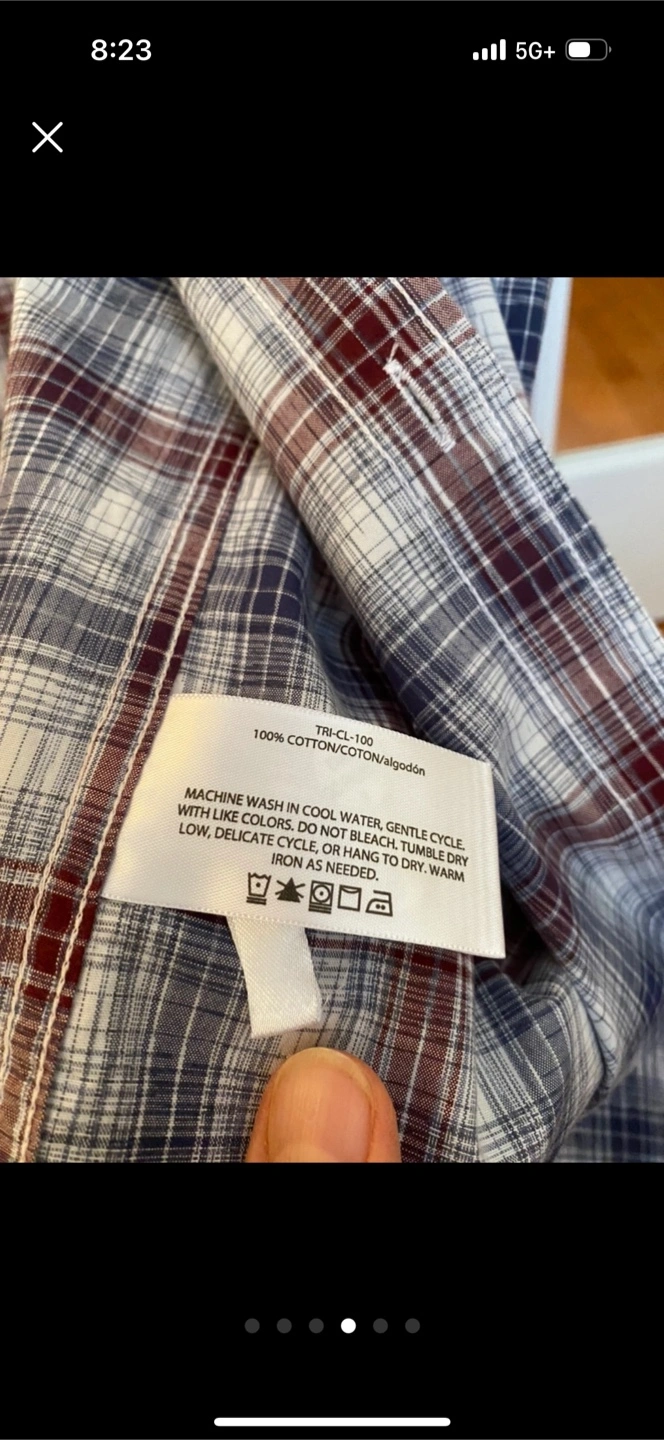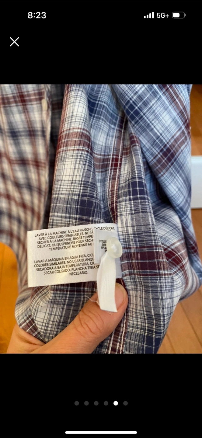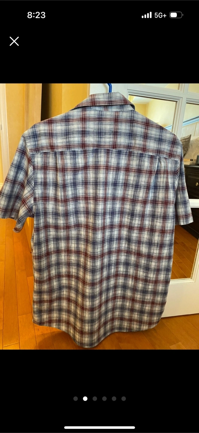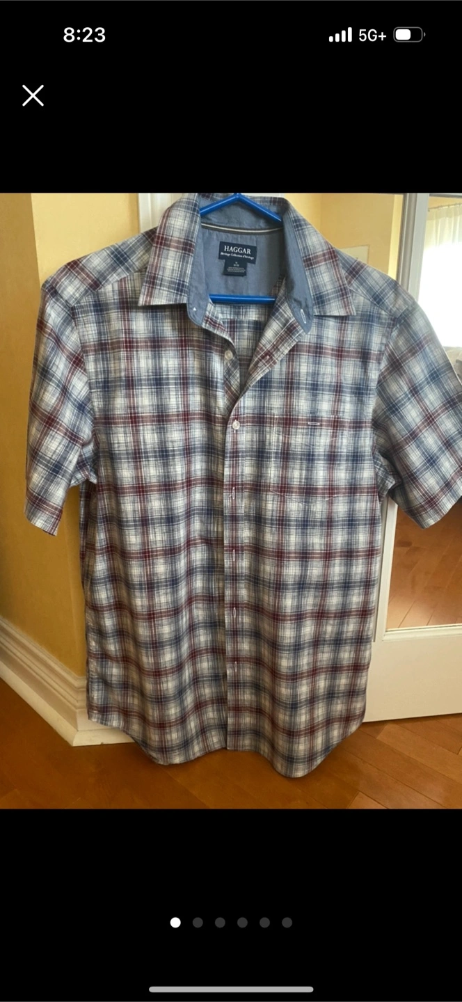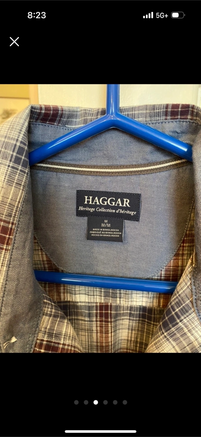 This Haggar Heritage Collection shirt features a classic plaid pattern in shades of brown, blue and white. It's made from 100% cotton, so it's super comfy! It is not buttoned down and has a front pocket. The size is medium, and the care instructions are simple: machine wash in cool water and tumble dry low. A great addition to any wardrobe! It has been freshly laundered and pressed. From a pet and smoke free home. Pickup only in the St Lawrence market area of downtown Toronto. Cash only.