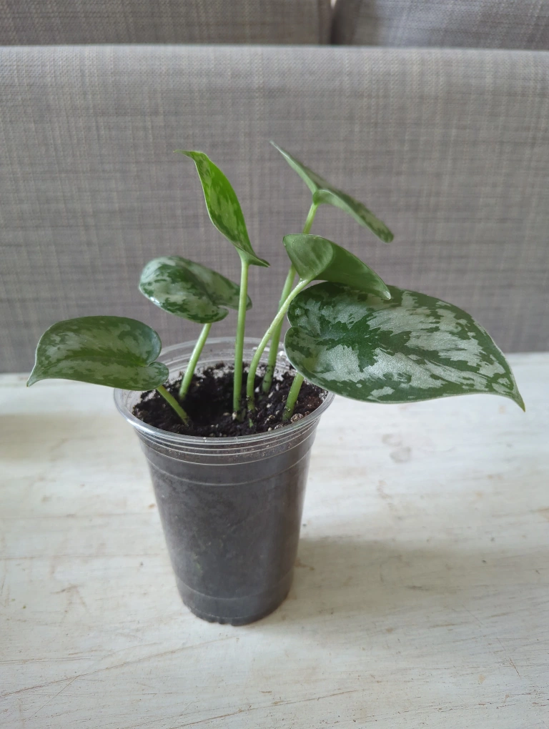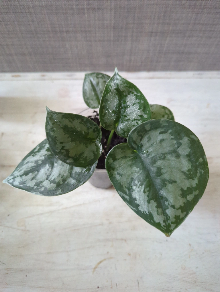 I'm selling a lovely Scindapsus Pictus Argyraeus, also known as Satin Pothos! This plant features beautiful, silvery markings on its dark green leaves, adding a touch of elegance to any space. It's easy to care for and thrives in bright, indirect light. Perfect for plant lovers of all levels! well rooted propagation.