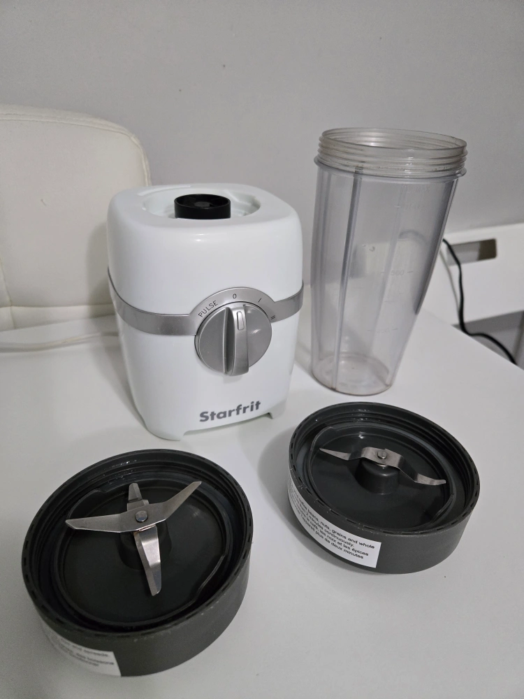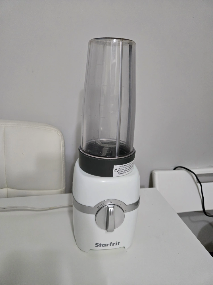 Selling a Starfrit personal blender. It's perfect for making smoothies and shakes. Comes with all the components shown in the pictures. It is in great condition and ready for a new home!