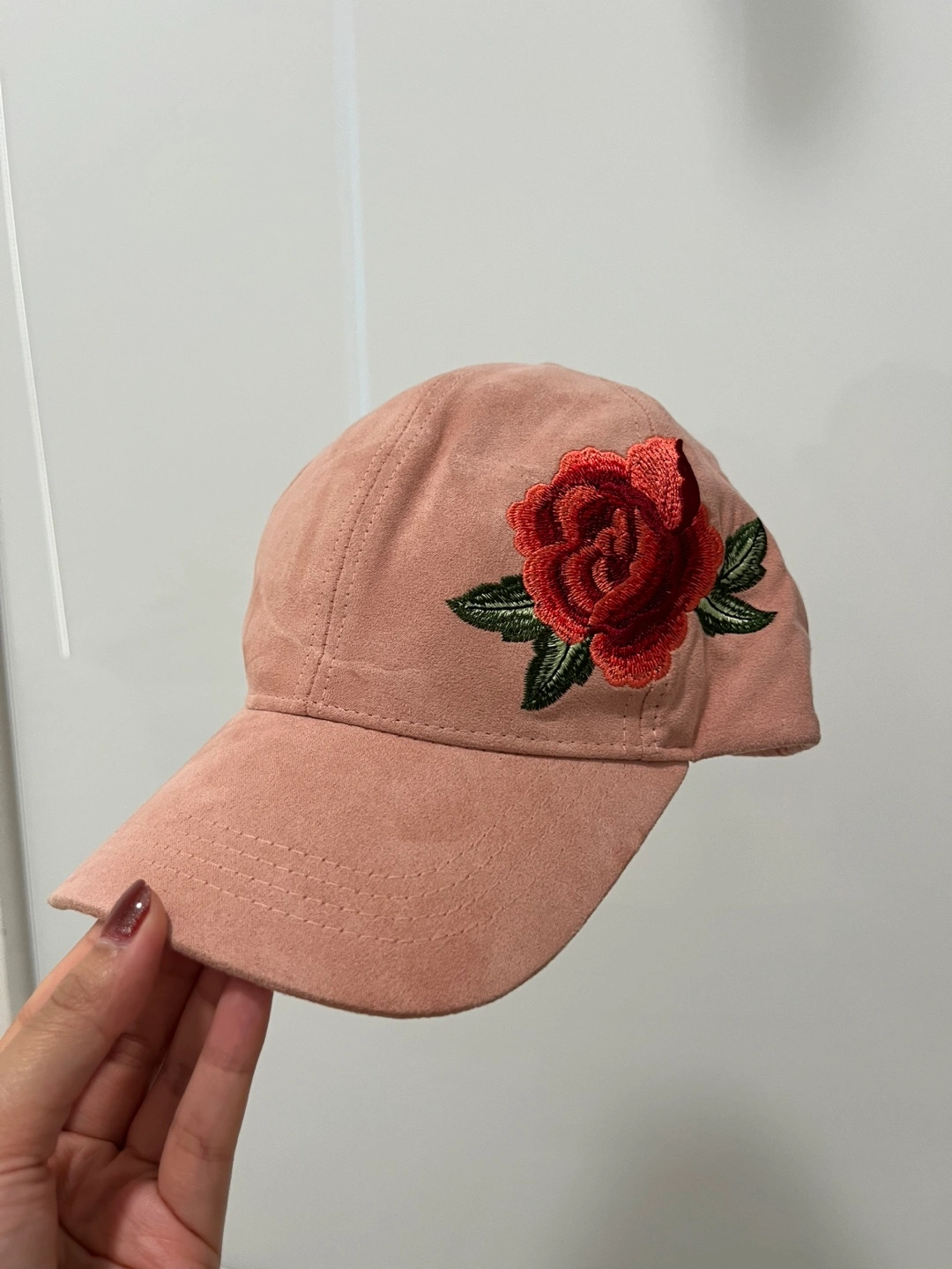 Selling a cute David & Young baseball cap in a lovely light pink colour! It features a beautiful rose embroidery design