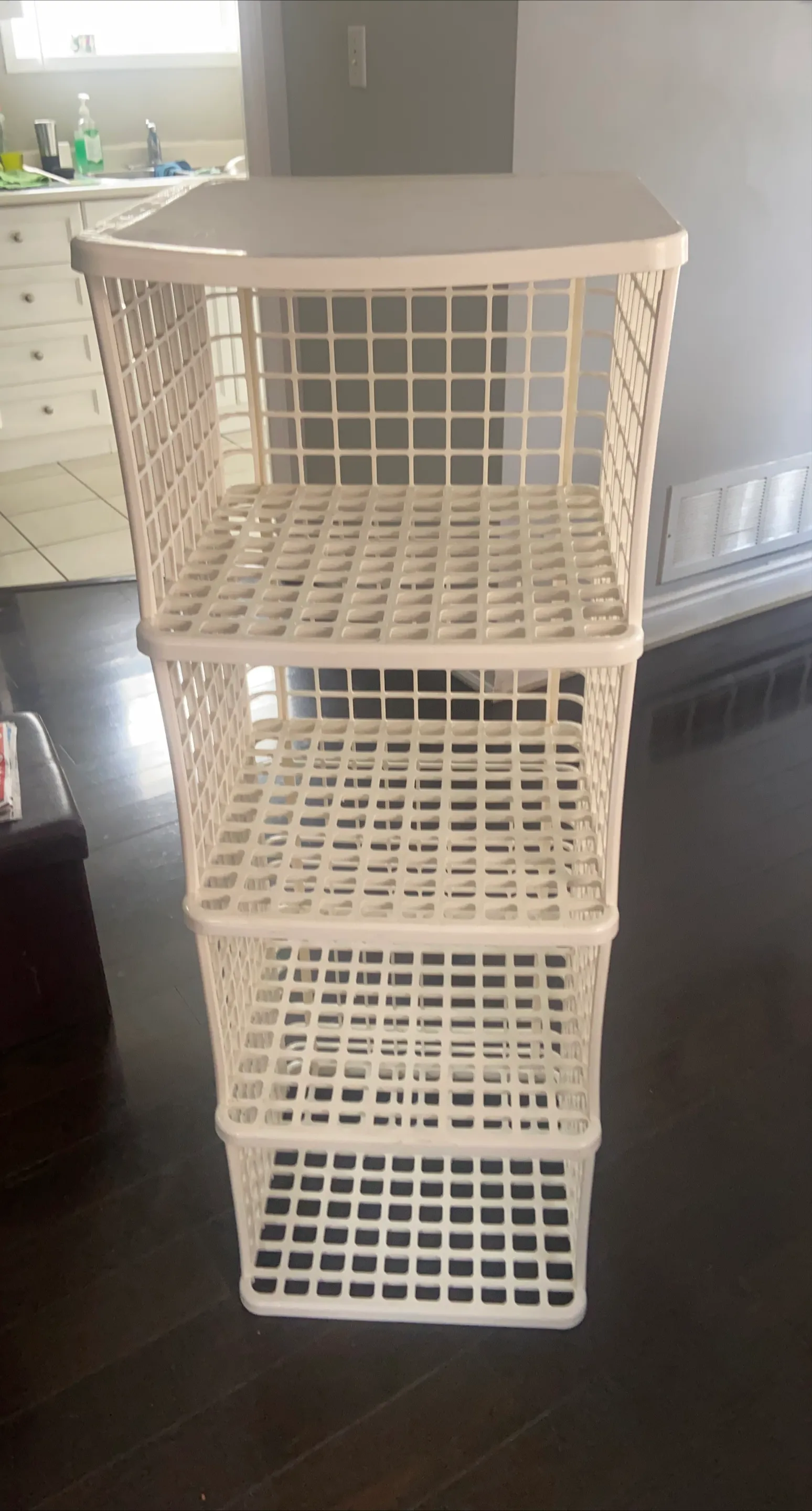 Selling a handy 4-tier plastic storage shelf! It's great for organizing items in your bathroom, closet, laundry room It's in good condition. Pick up only