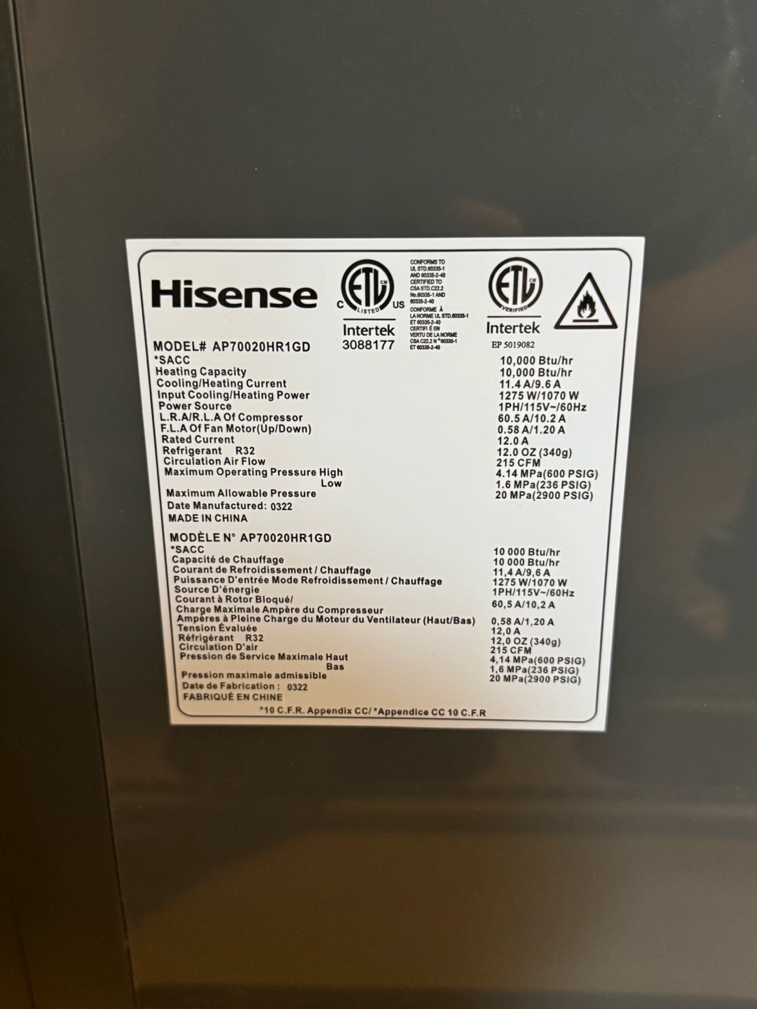 Selling a Hisense portable air conditioner, model AP70020HR1GD. Purchased from Costco for $550 and used for 2 summers. Moving to a new place with built in AC and no longer need. Includes all the necessary components and accessories for easy setup and use. Unit in great condition and can roll.
