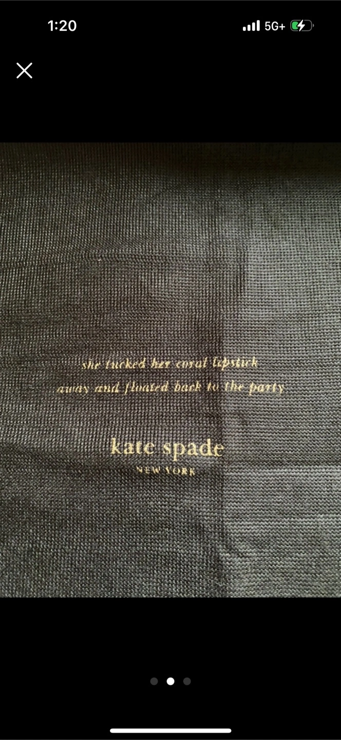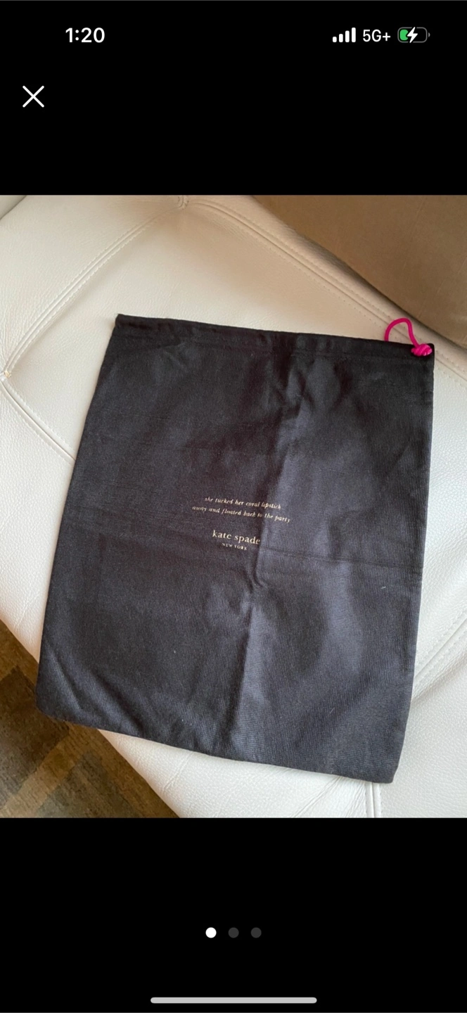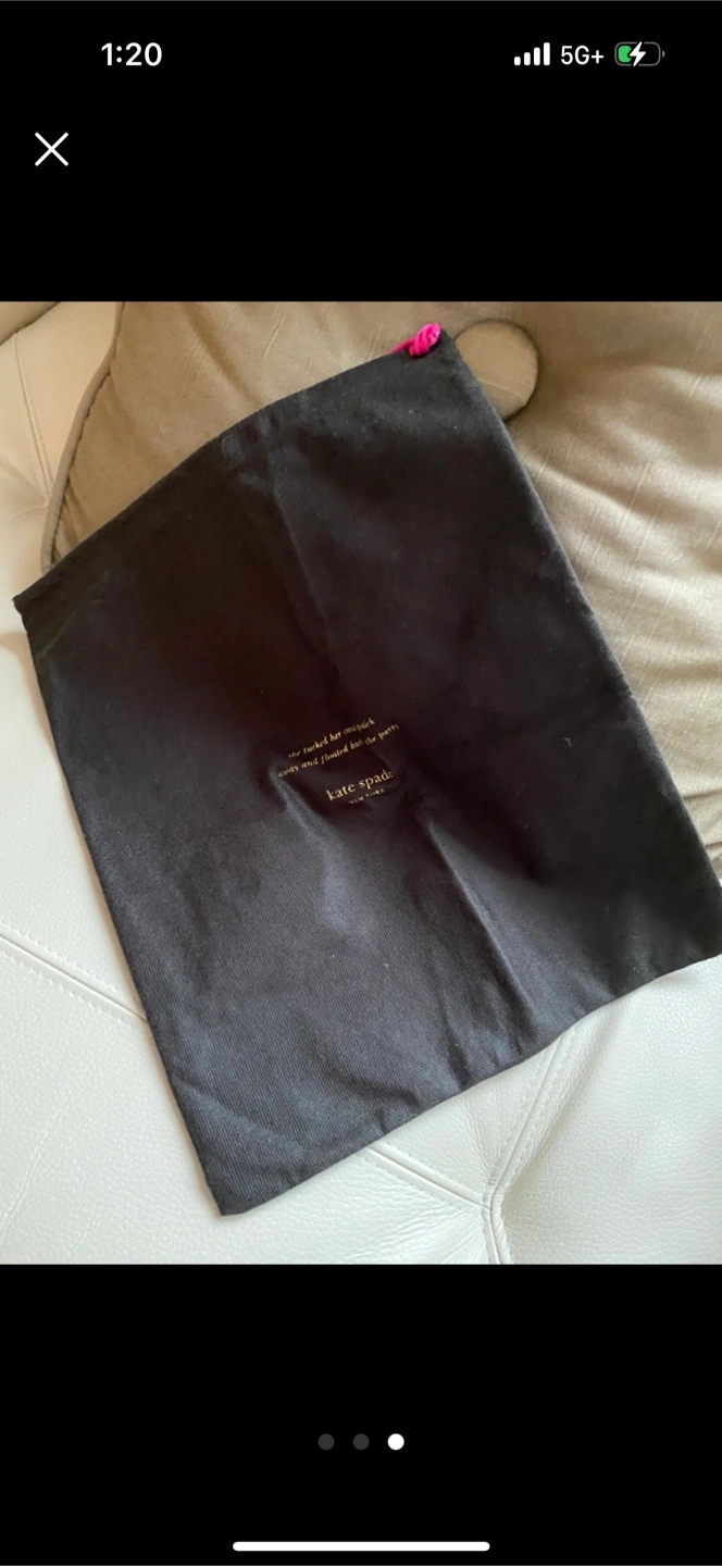 Selling a Kate Spade dust bag! It's in great condition and ready to protect your favourite Kate Spade item. The bag is brown with a gold inscription and fuchsia coloured drawing. Never used and I have several. Also see my other listing of other designer dust bags.
