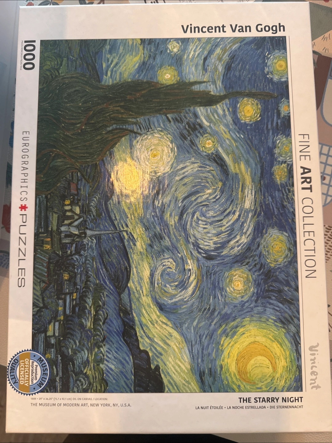 161Selling a Eurographics 1000-piece jigsaw puzzle featuring Vincent Van Gogh's "The Starry Night"! All the pieces are included and it's ready for a new home
