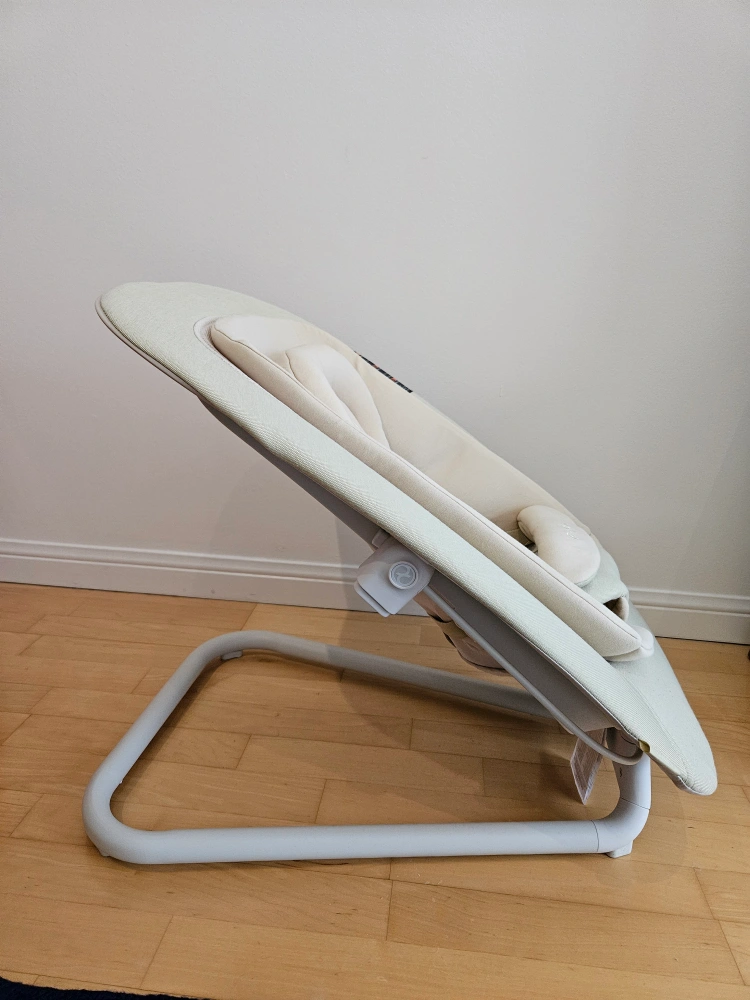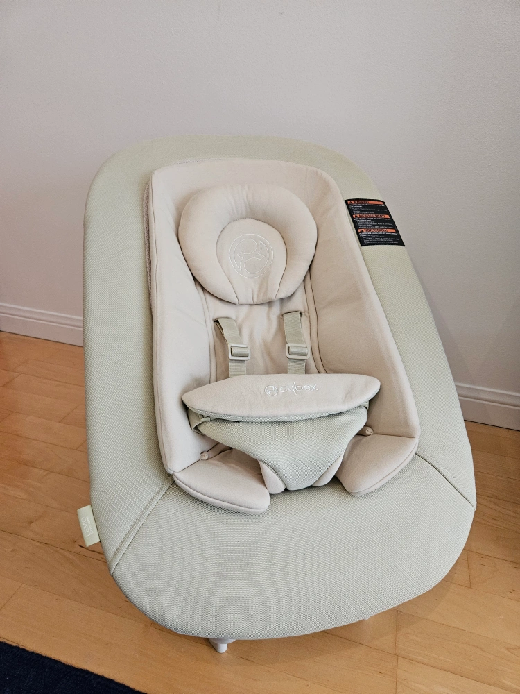 Selling a Cybex Lemo Bouncer in a lovely sand colour! It's in great condition and ready for a new home. Perfect for keeping your little one comfortable and entertained. There is a hole(by washing machine) backside of infant pad but not an issue to use.