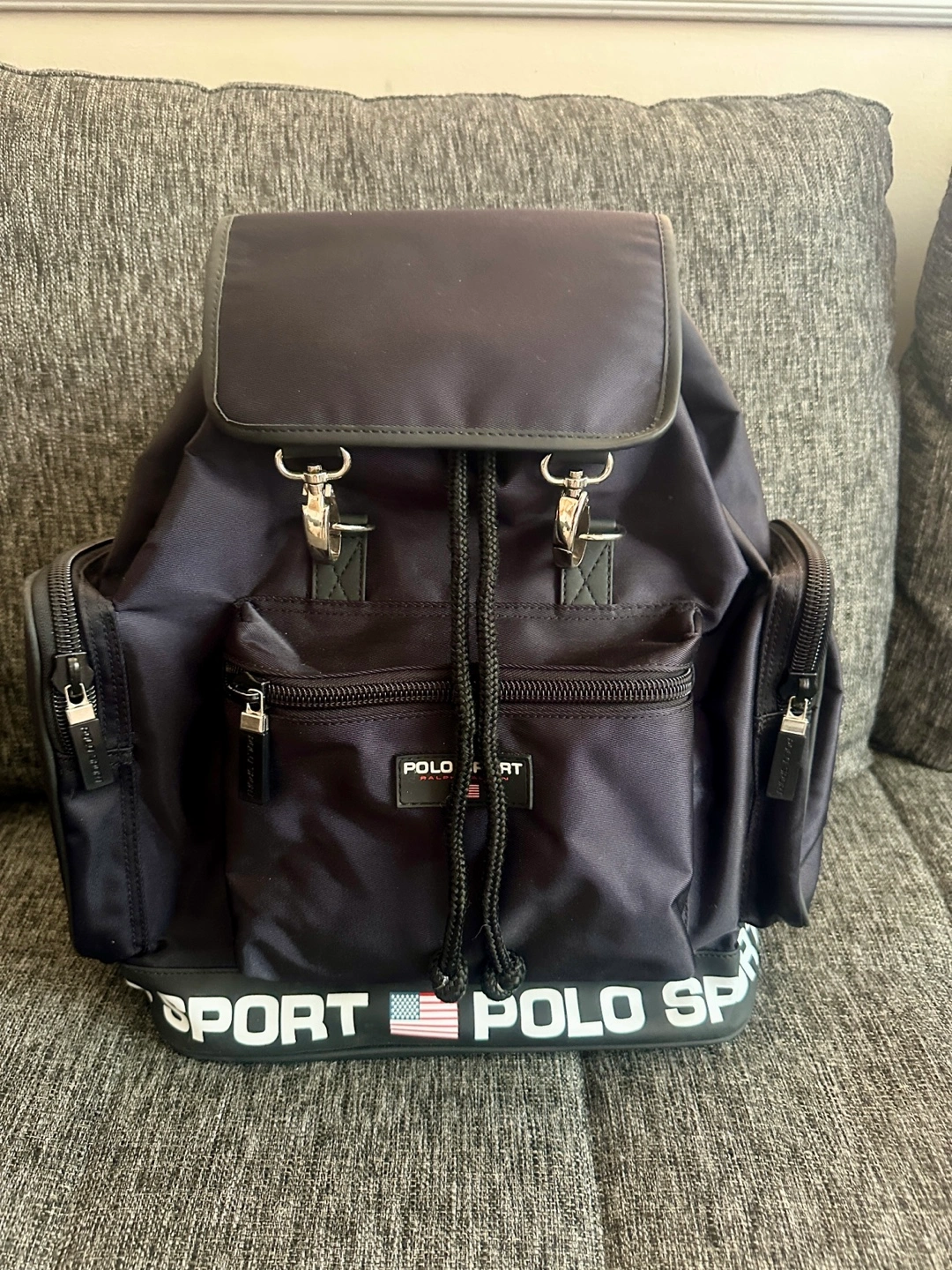 This is a Polo Sport Ralph Lauren backpack with a black colourway and durable construction, perfect for daily use or travel. This backpack is in perfect condition, never used! * Durable Material * Adjustable Straps * Multiple Pockets * Drawstring Closure My cell 6478679177