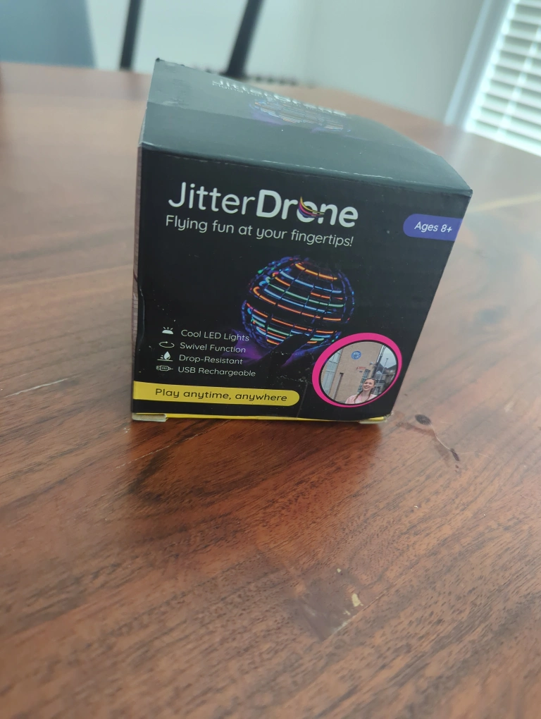 Get ready for some flying fun with this Jitter Drone! It's perfect for ages 8+ and features cool LED lights, a swivel function, and is drop-resistant. It's also USB rechargeable, so you can play anytime, anywhere