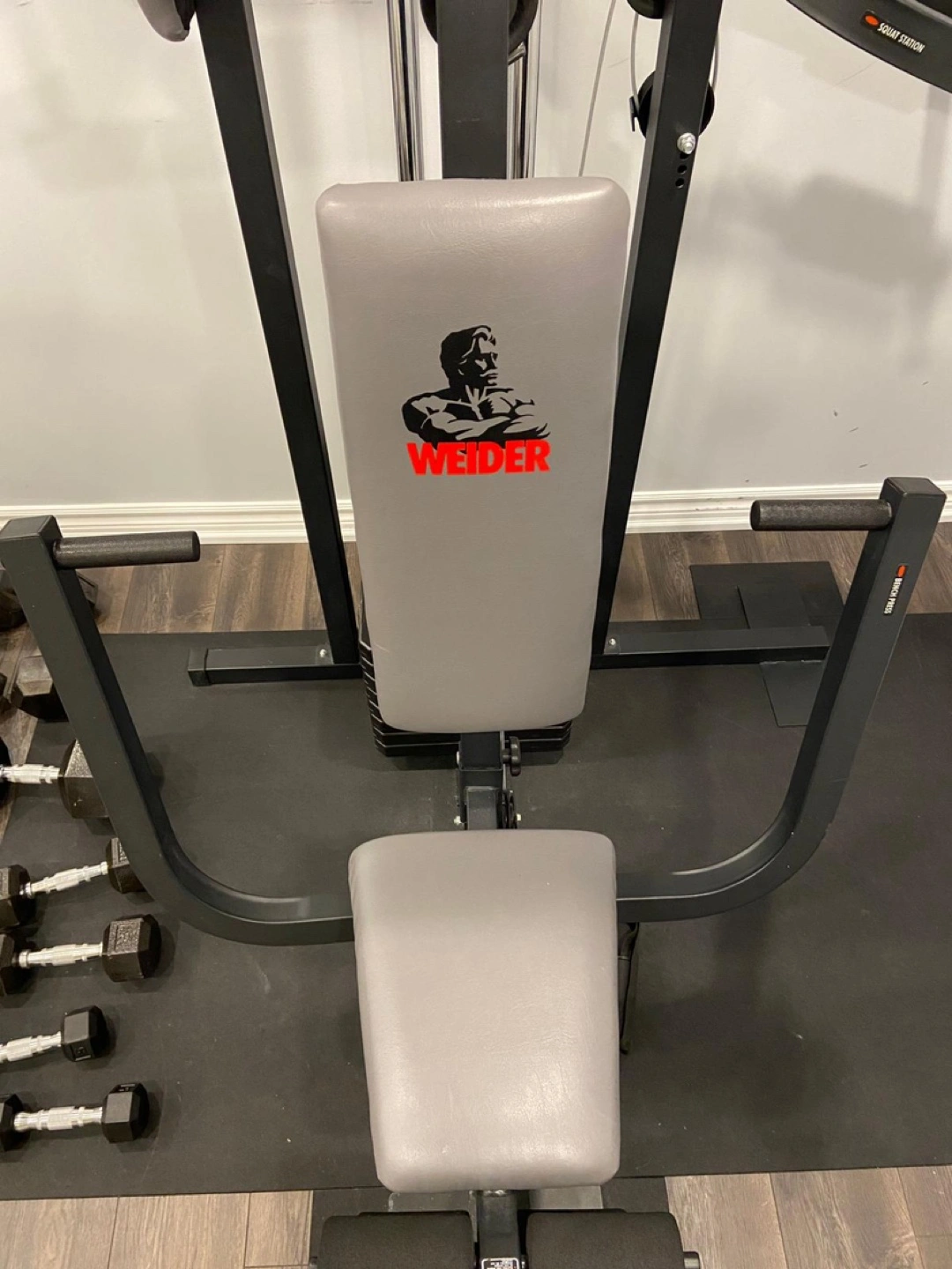 Selling a Weider home gym system. It's in good shape and ready for a new home. Perfect for getting your workouts in without leaving the house!