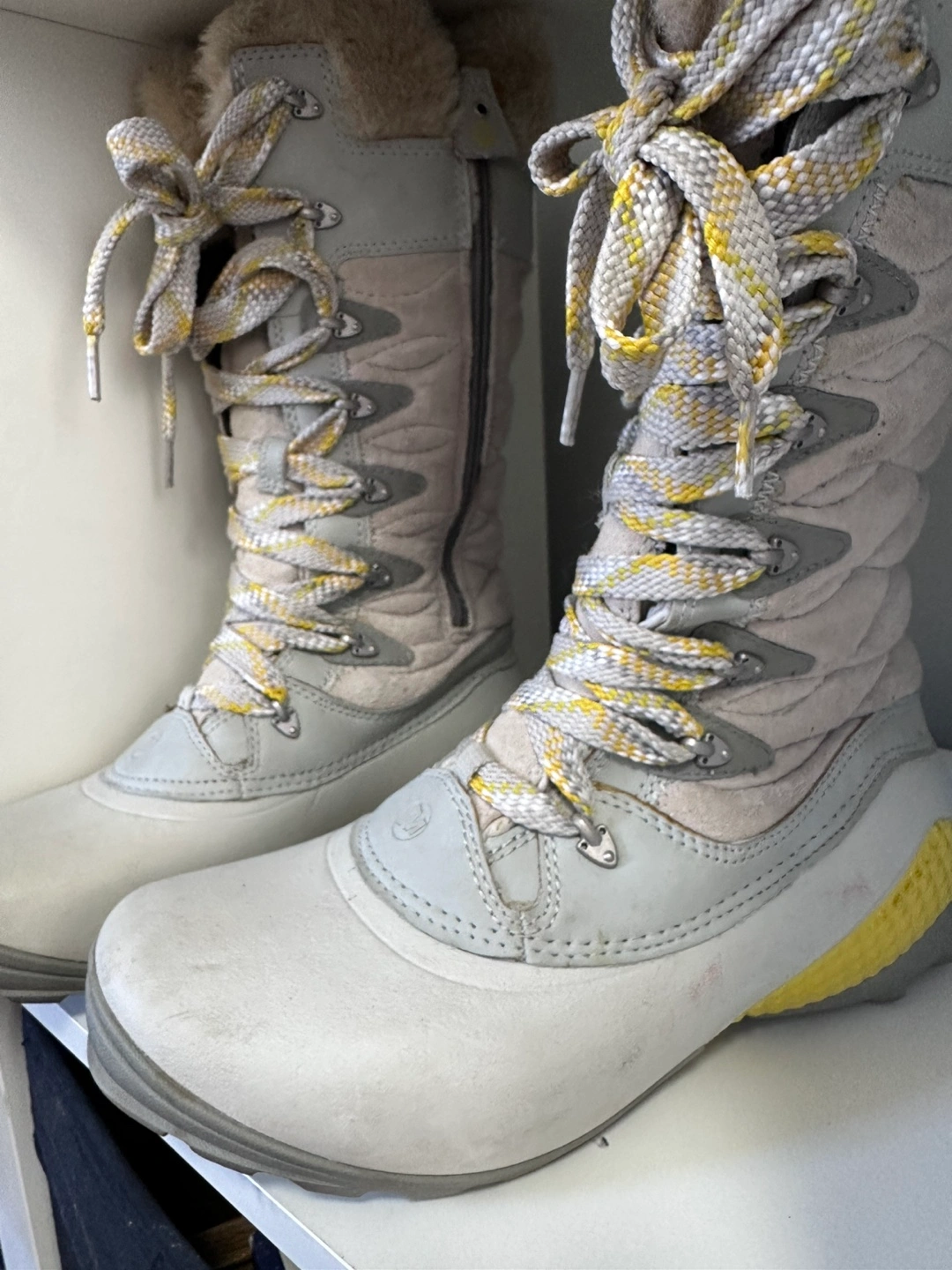 Selling a pair of Merrell winter boots. They have a cozy faux fur trim and a quilted design.