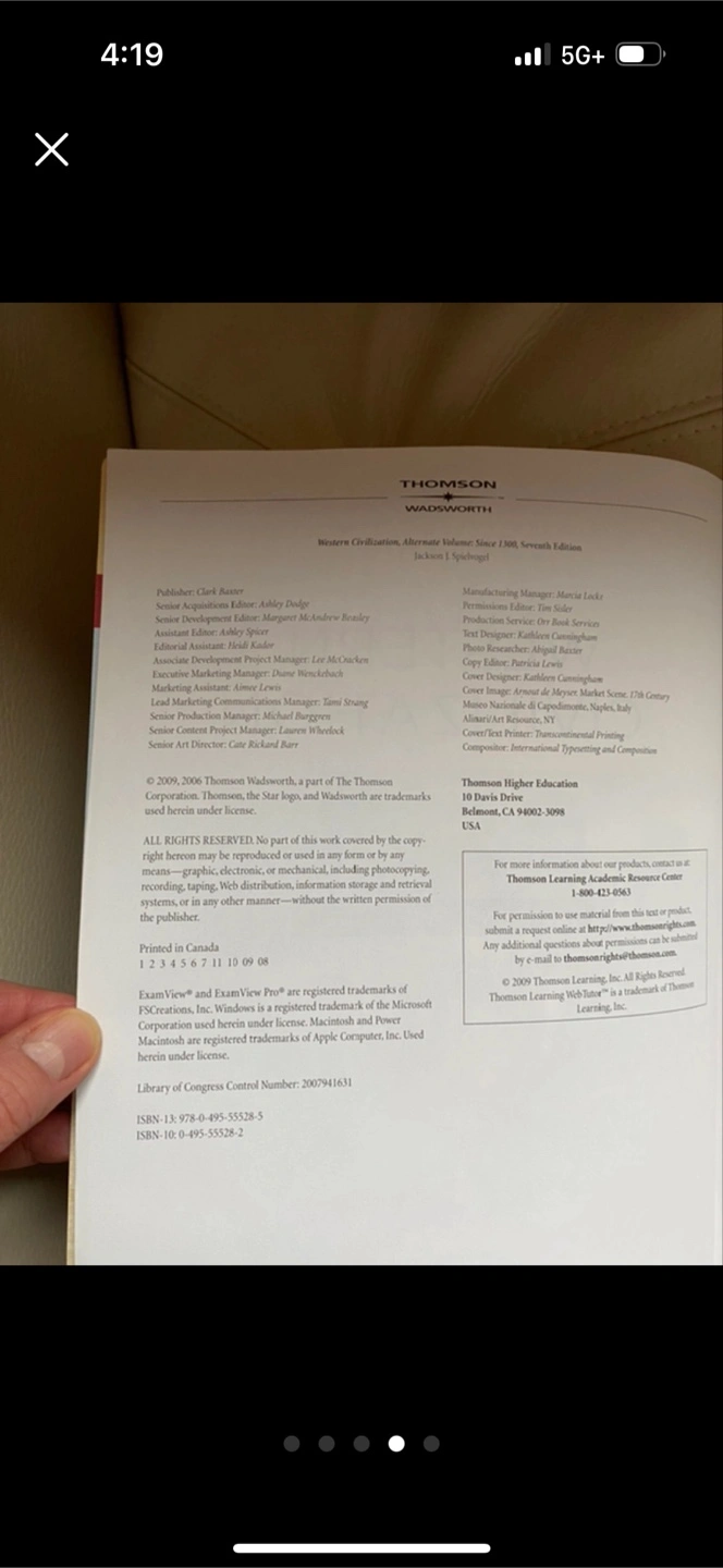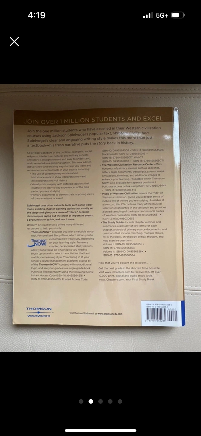 Selling a used copy of Western Civilization, Seventh Edition, by Jackson J. Spielvogel in pristine condition. This is an alternate volume since 1300. It's a great resource for anyone studying history!