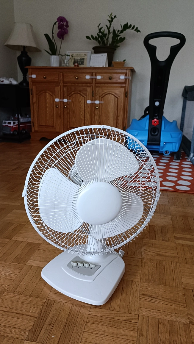 Selling a white table fan in great condition! It's perfect for keeping cool during the summer months. It’s lightweight and easy to move around, so you can use it in any room of the house