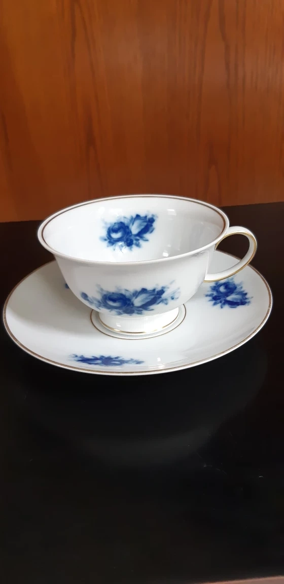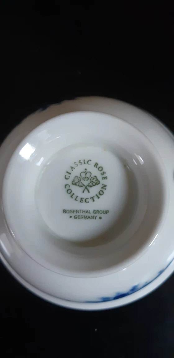 848Lovely Rosenthal cup and saucer set from the Classic Rose Collection White with a delicate blue rose pattern and gold trim Perfect for adding a touch of elegance to your tea time!