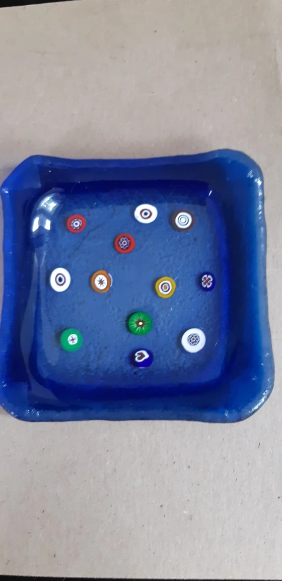 810Lovely blue Murano glass trinket dish Features colourful millefiori accents, adding a touch of elegance to any space