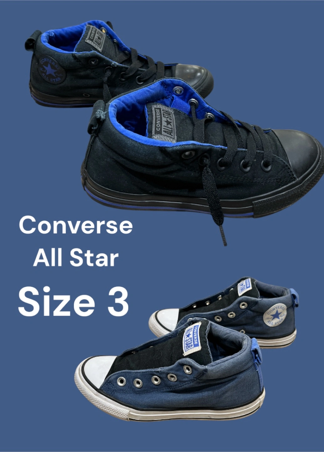 Selling a pair of Converse All Star shoes in size 3. They feature the classic Converse design and are in good condition. Perfect for everyday wear!