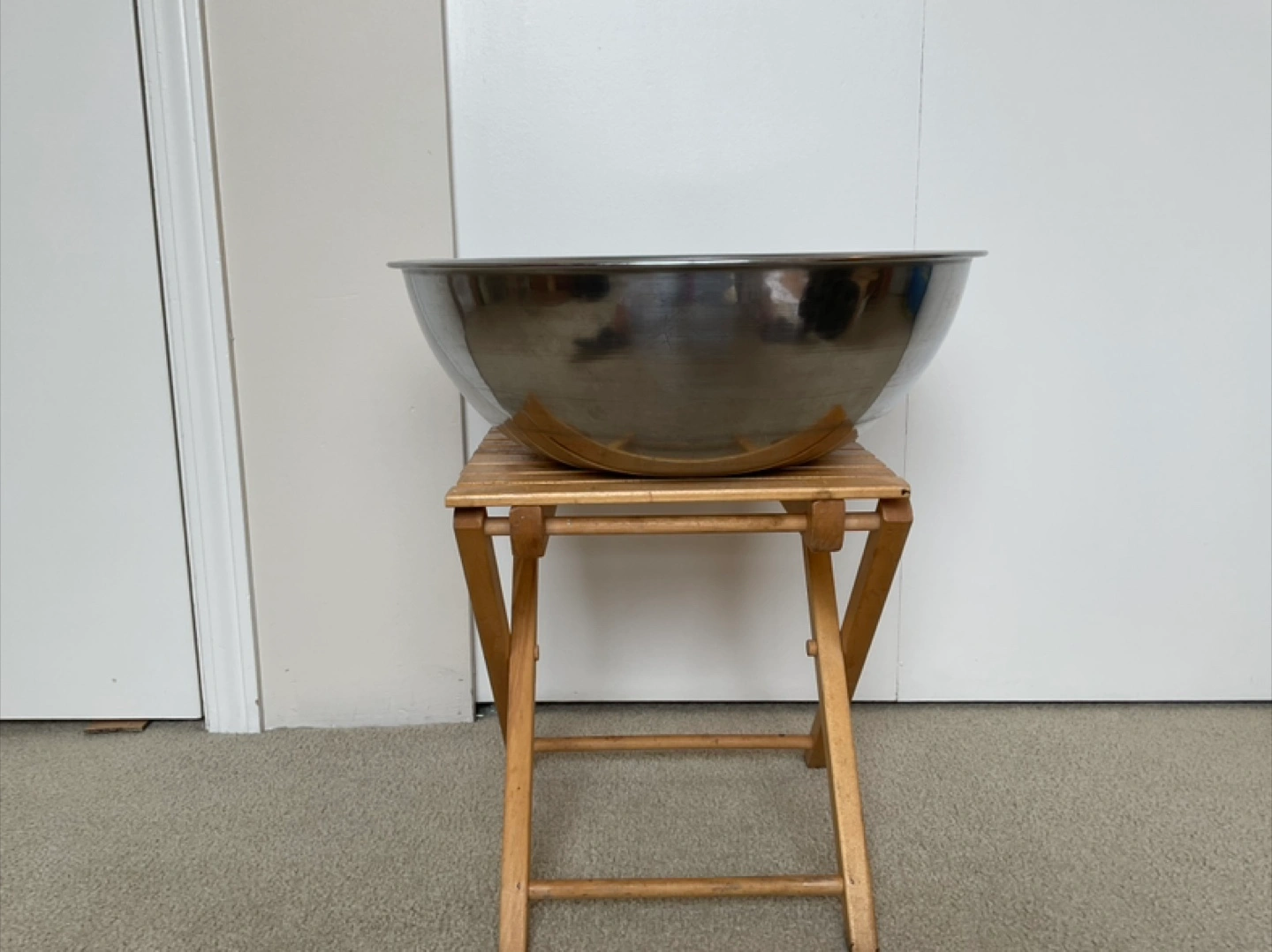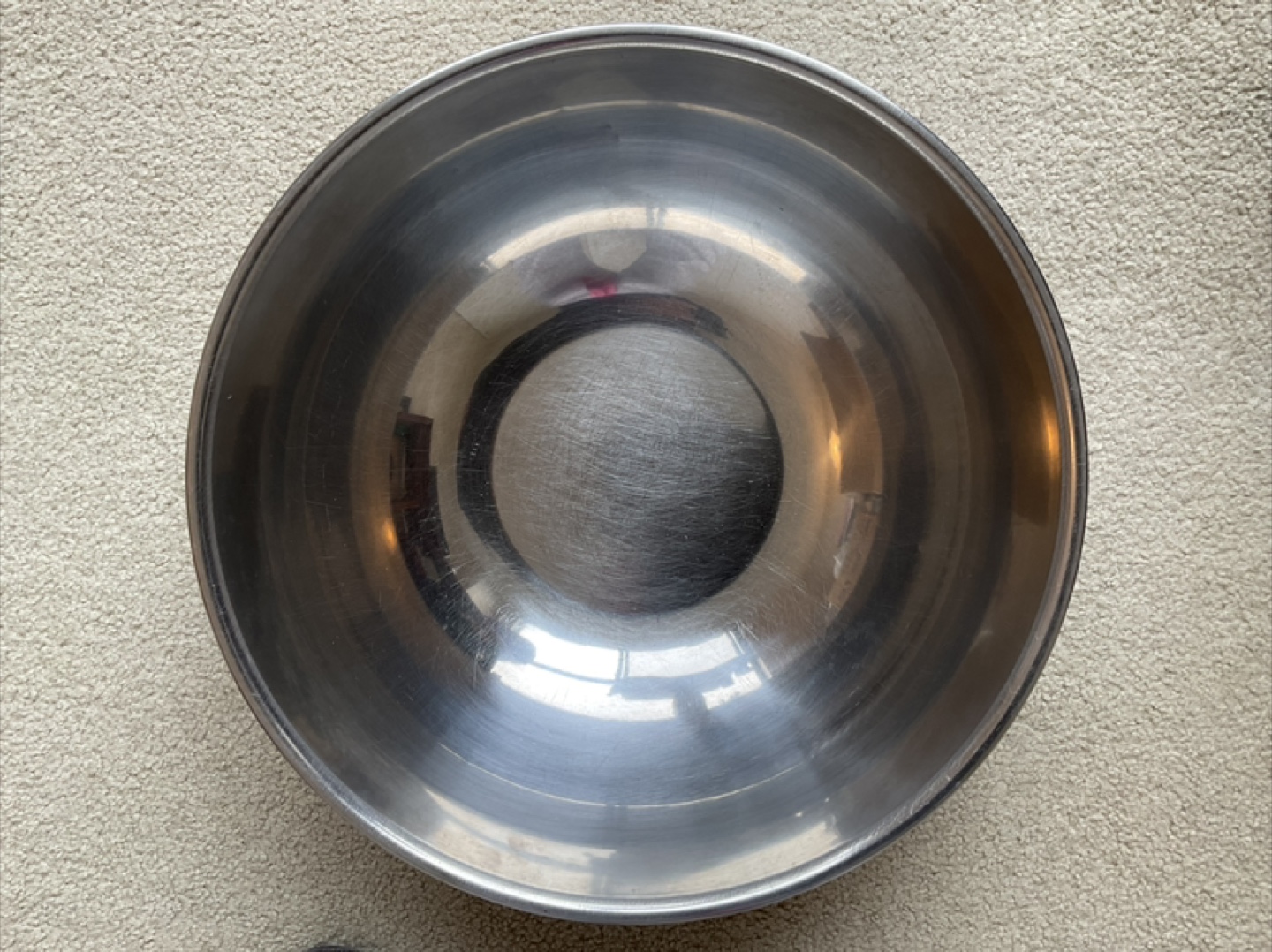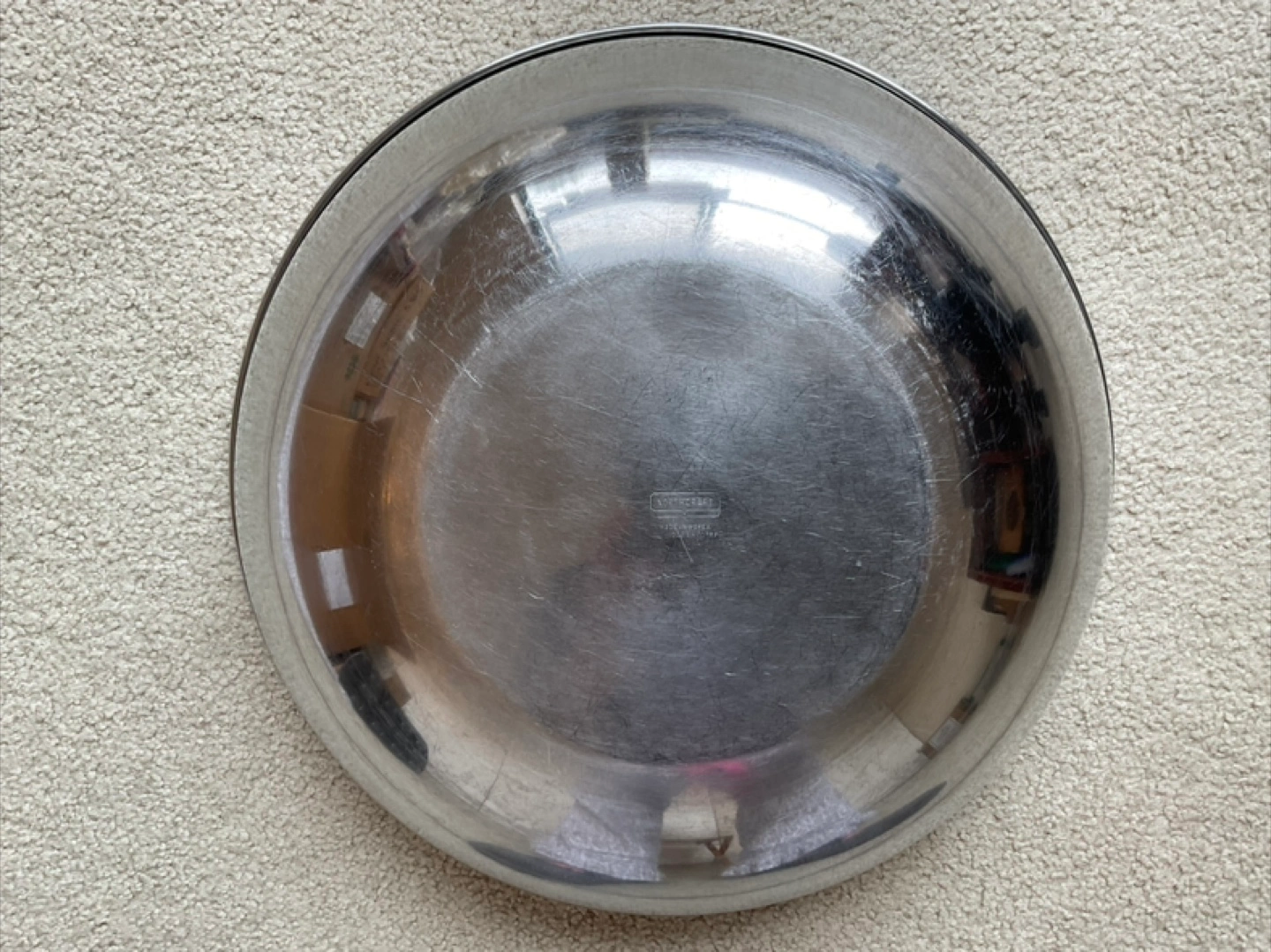 Stainless steel bowl make in Korea measures 16.25 inches wide at top, 5.5 inches tall with flat bottom. Cash only, Marine Drive and Kerr area.