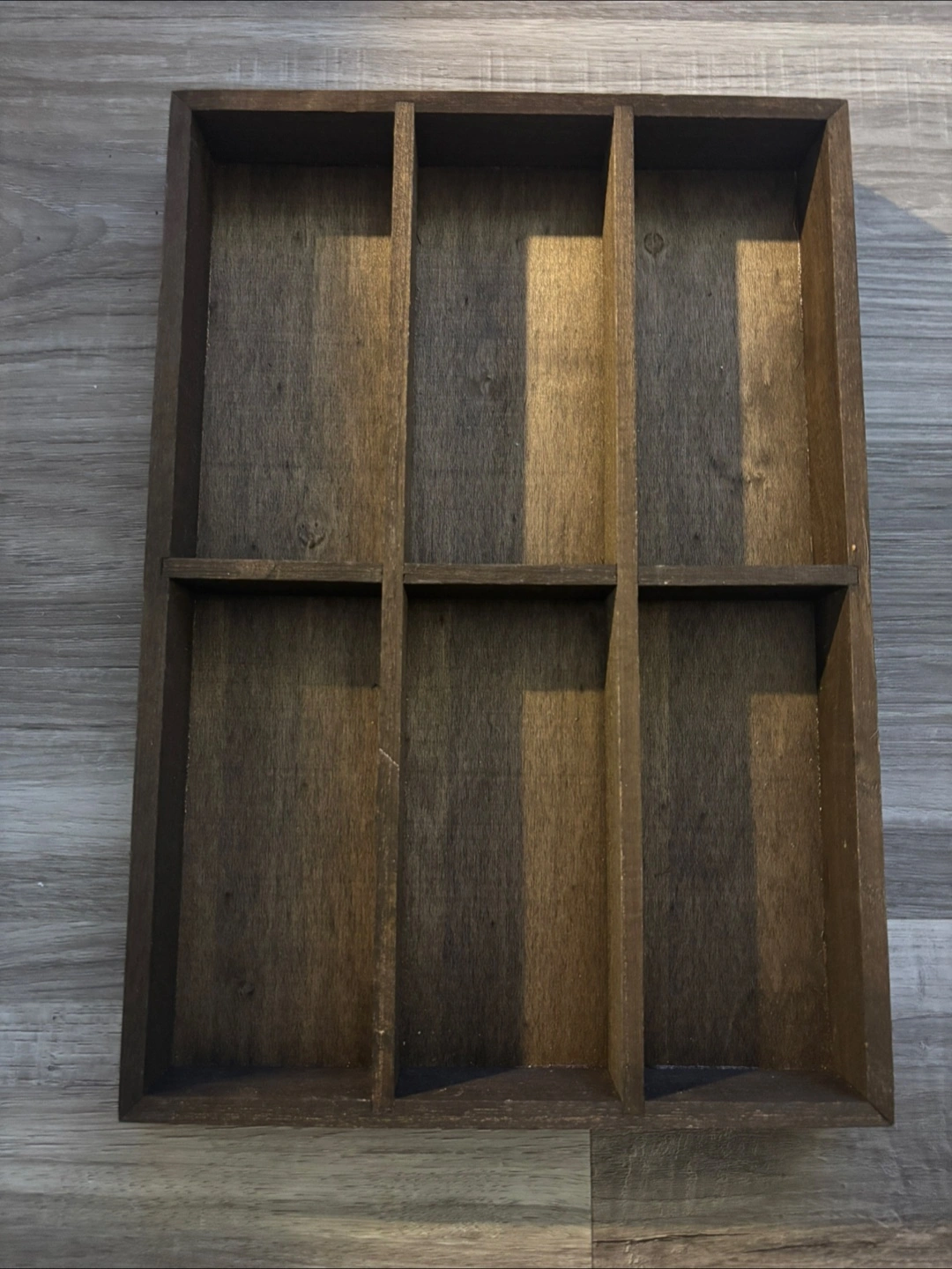 Rustic Wooden Caddy with 3 Boxes & Metal Stand