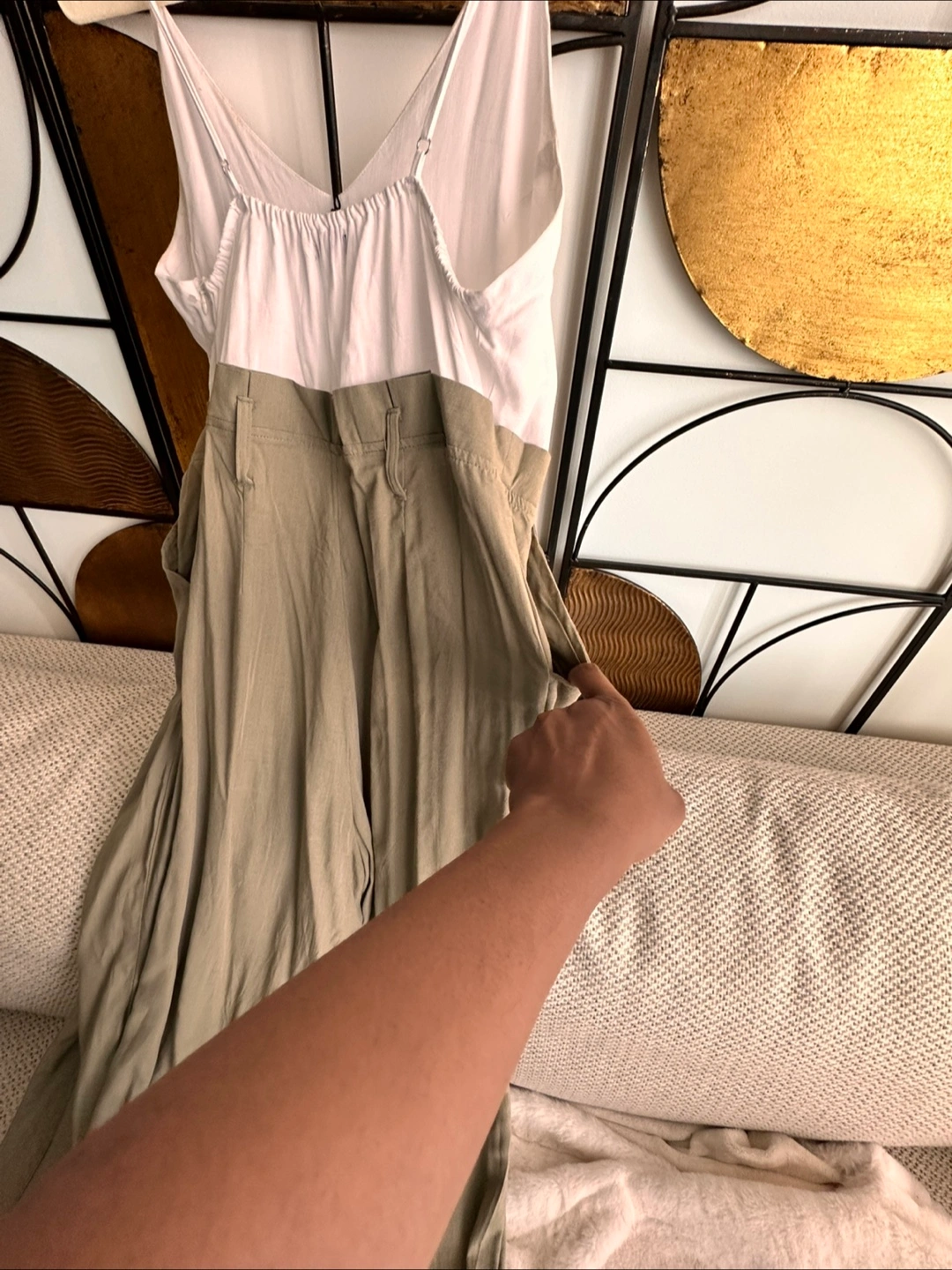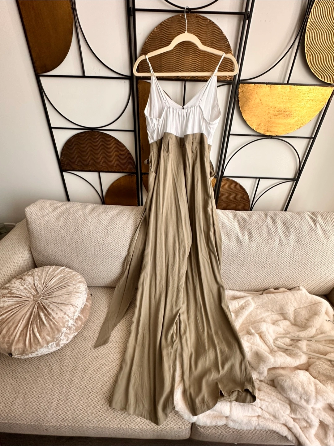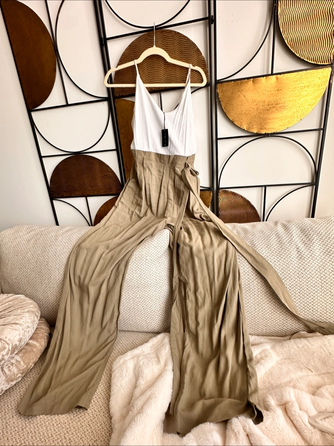 This Aulin & Co. jumpsuit is in great condition and ready for a new home! It features a white top and beige bottoms, perfect for a casual day out or a stylish evening look. The size is S and it can fit a M. Feel free to ask any questions! ๐