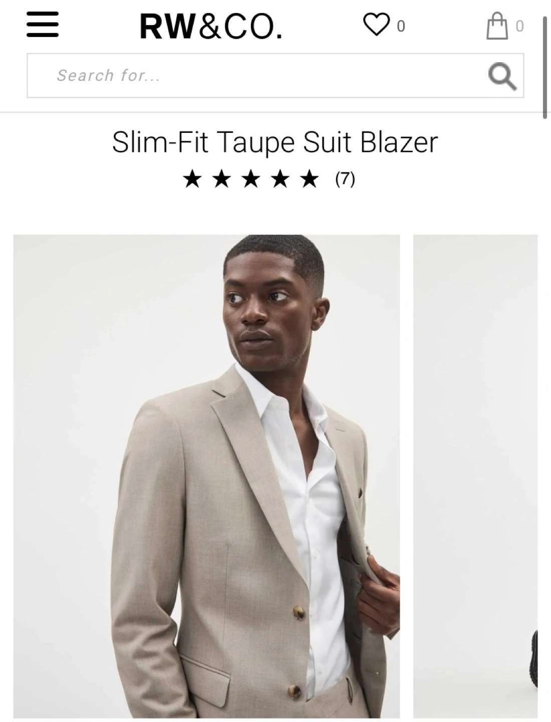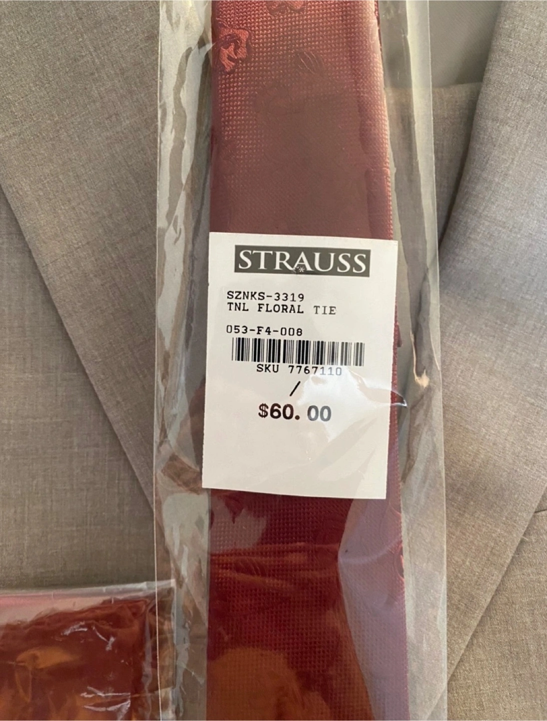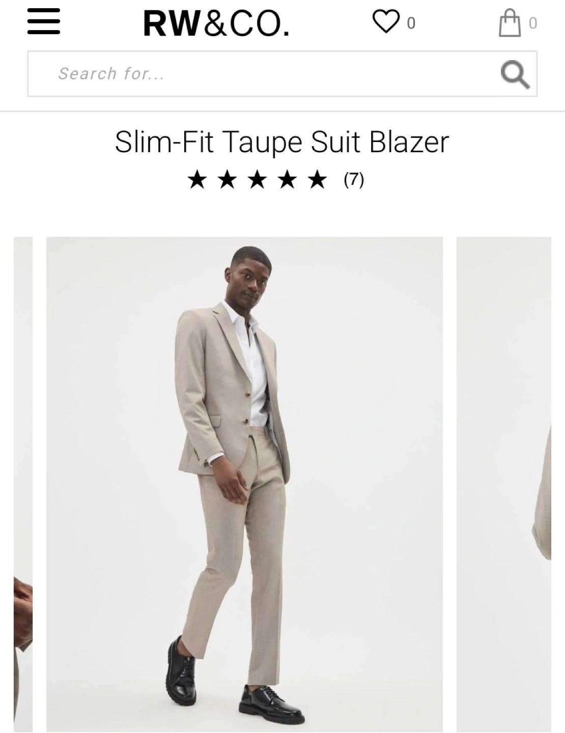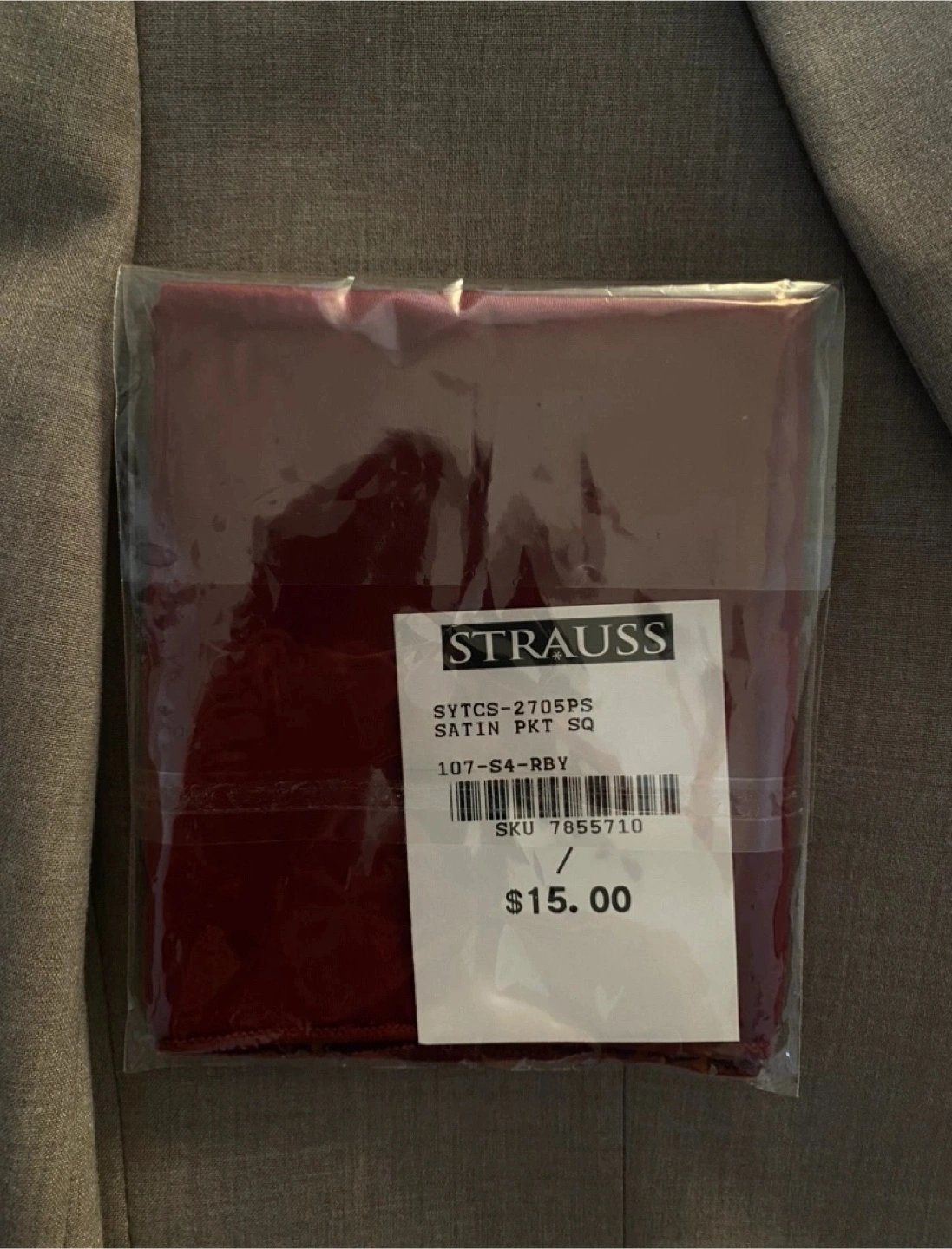 270RW & Co Slim-Fit Taupe Suit (Blazer and Pants) Comes with maroon tie & pocket square Size: Pants 32x30 Blazer Regular 40 Worn once 10/10 Conditon https://www.rw-co.com/en/slim-fit-taupe-suit-blazer/473471.html?utm_source=instore-qrcode&utm_campaign=instore-qrcode-products&utm_medium=referral