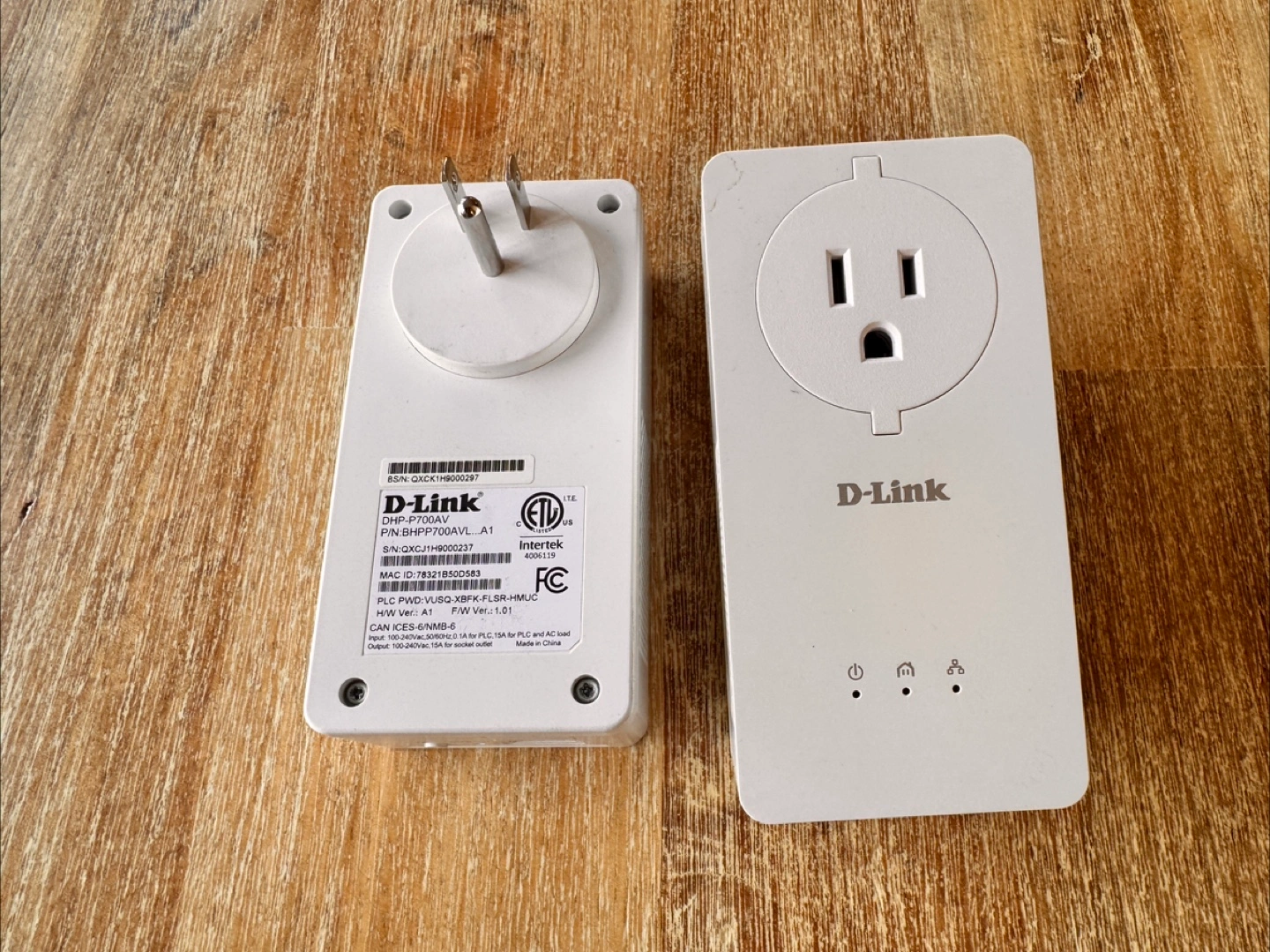 Selling a D-Link DHP-P700AV PowerLine AV2 1000 Adapter. This adapter allows you to extend your network using your home's existing electrical wiring. It supports input of 100-240Vac, 50/60Hz, 0.1A for PLC, and 15A for PLC and AC load, with an output of 100-240Vac, 15A for the socket outlet