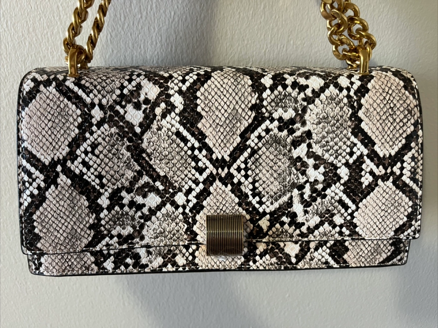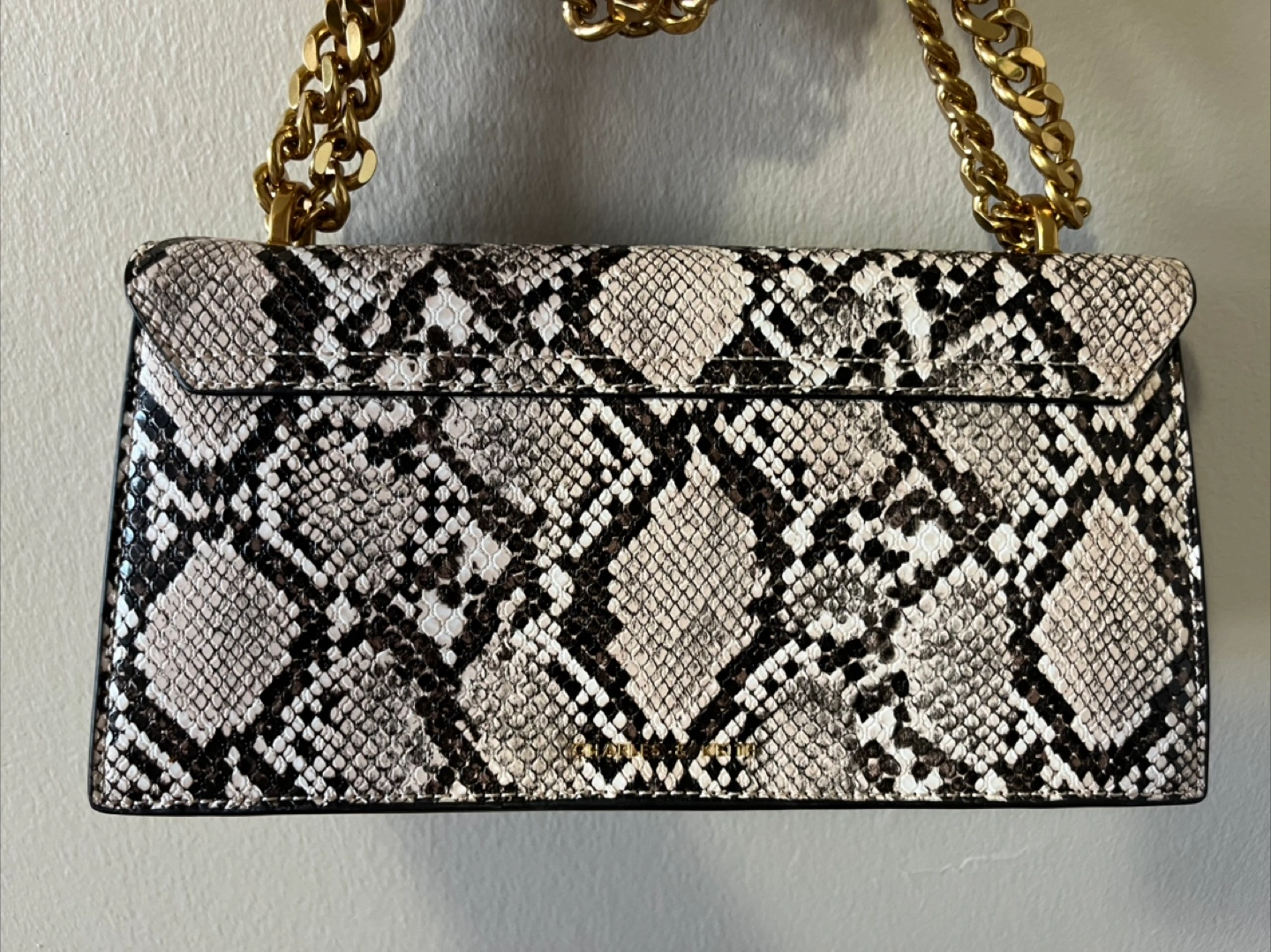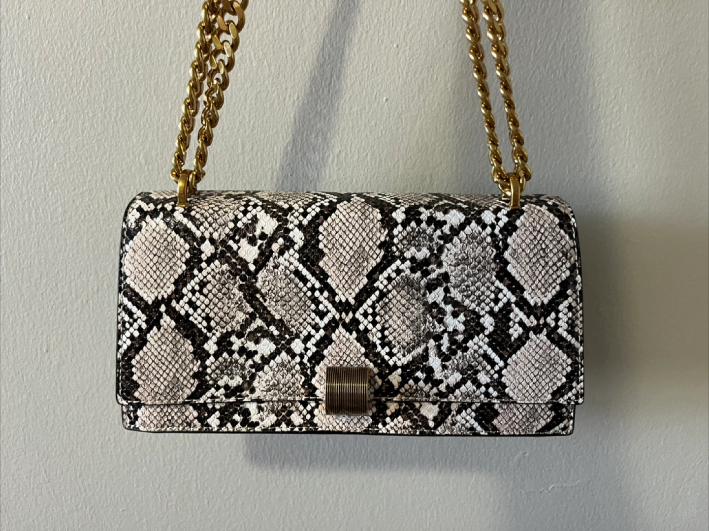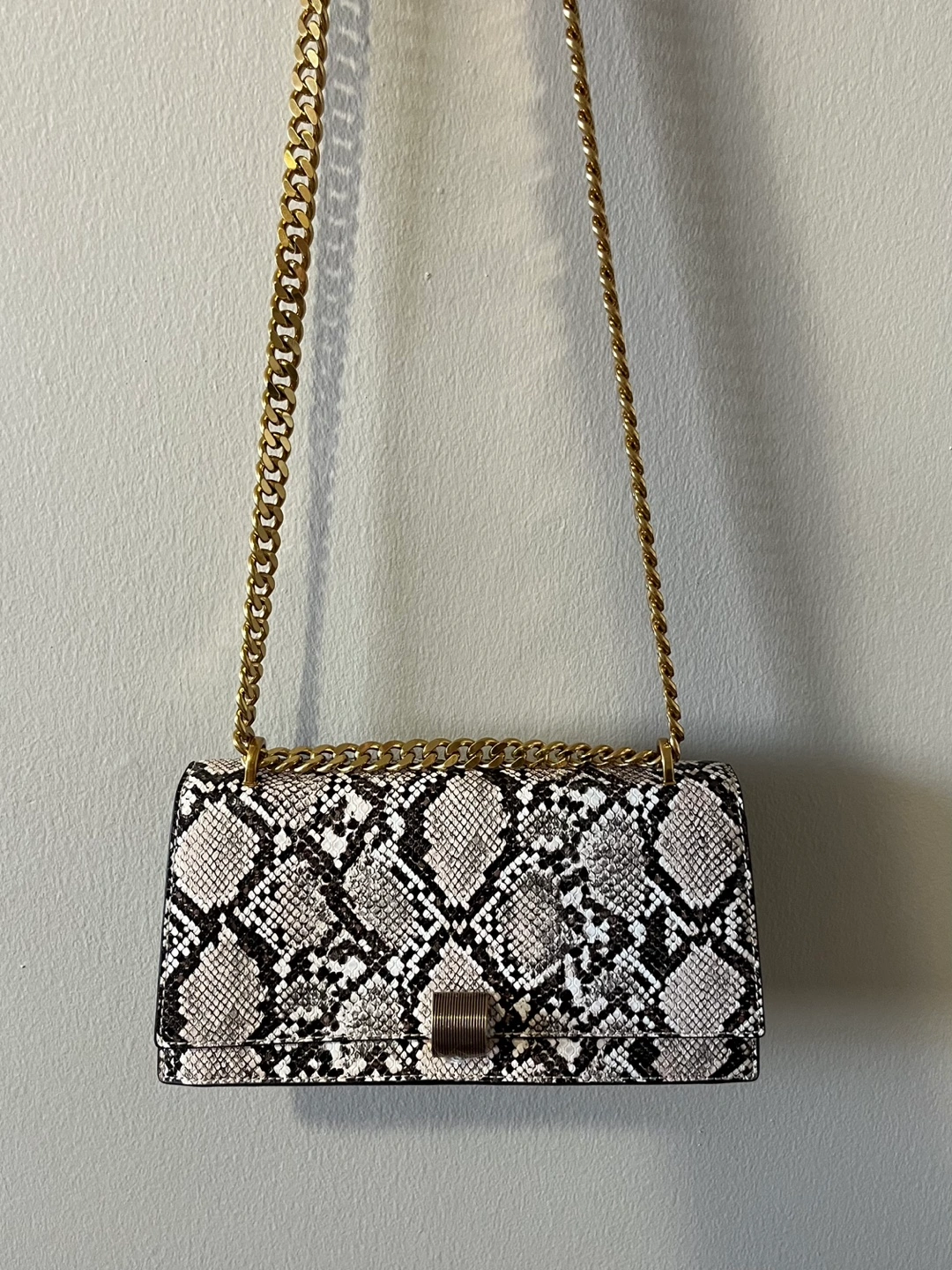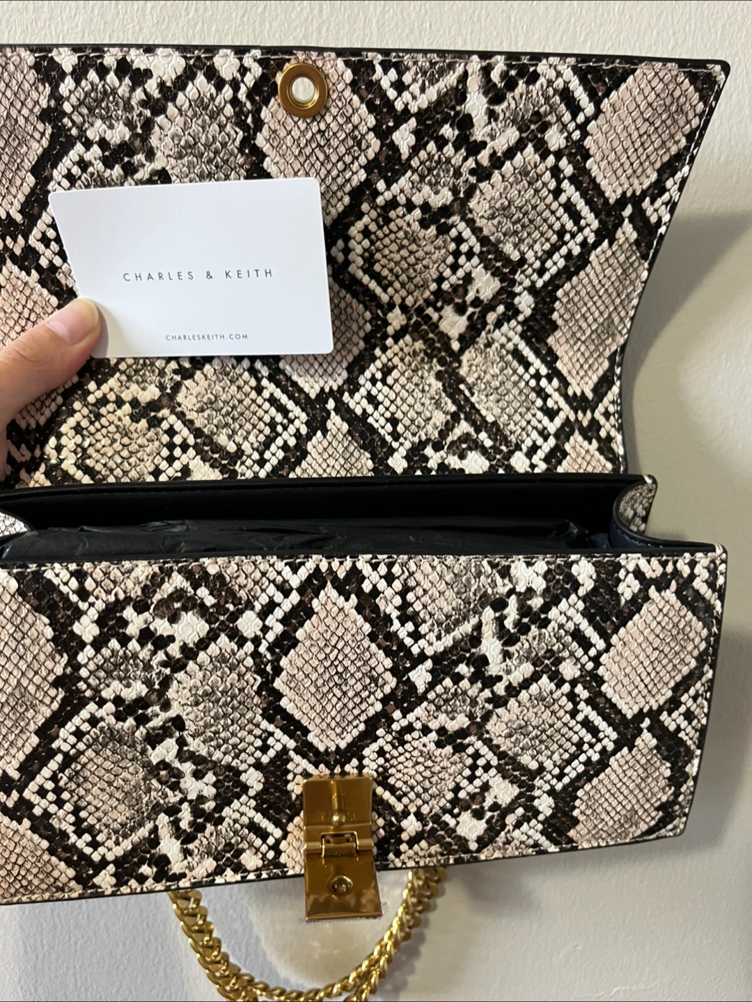 [ Charles & Keith Chain Strap Snake Print Trapeze Shoulder Bag ]