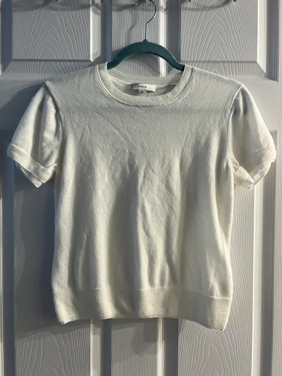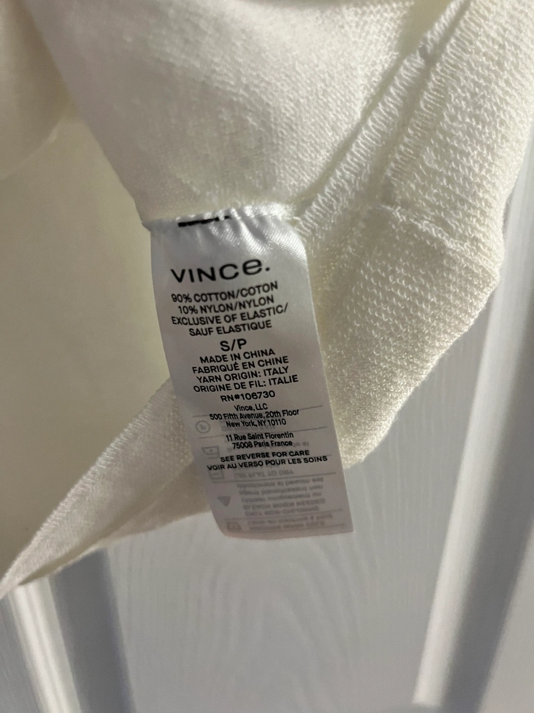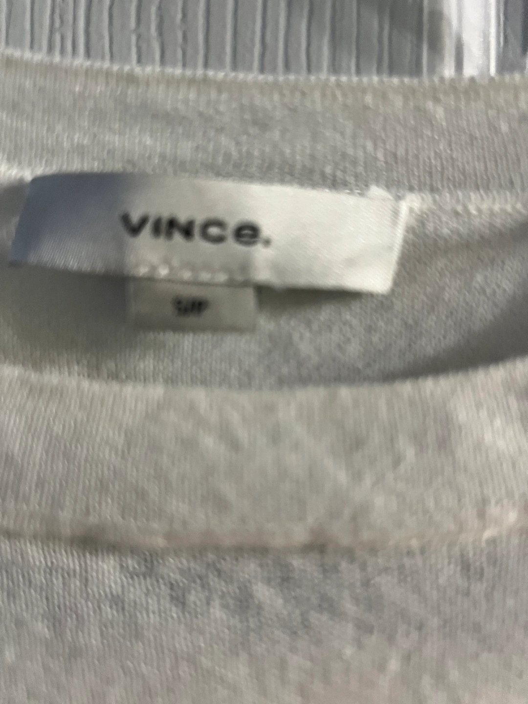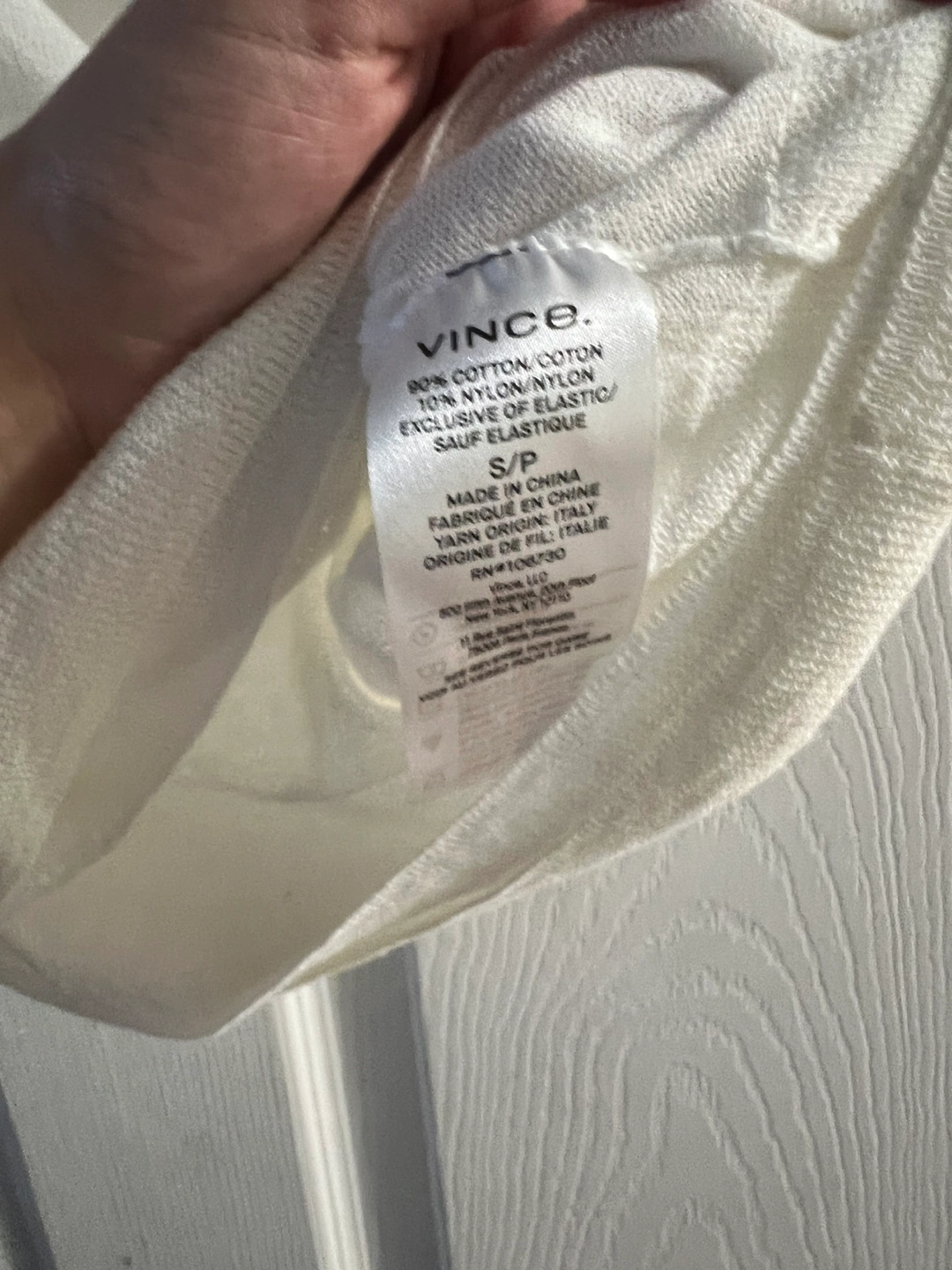 104This is a Vince top in size small. It's made of a cotton and nylon blend. Perfect for a casual look!
