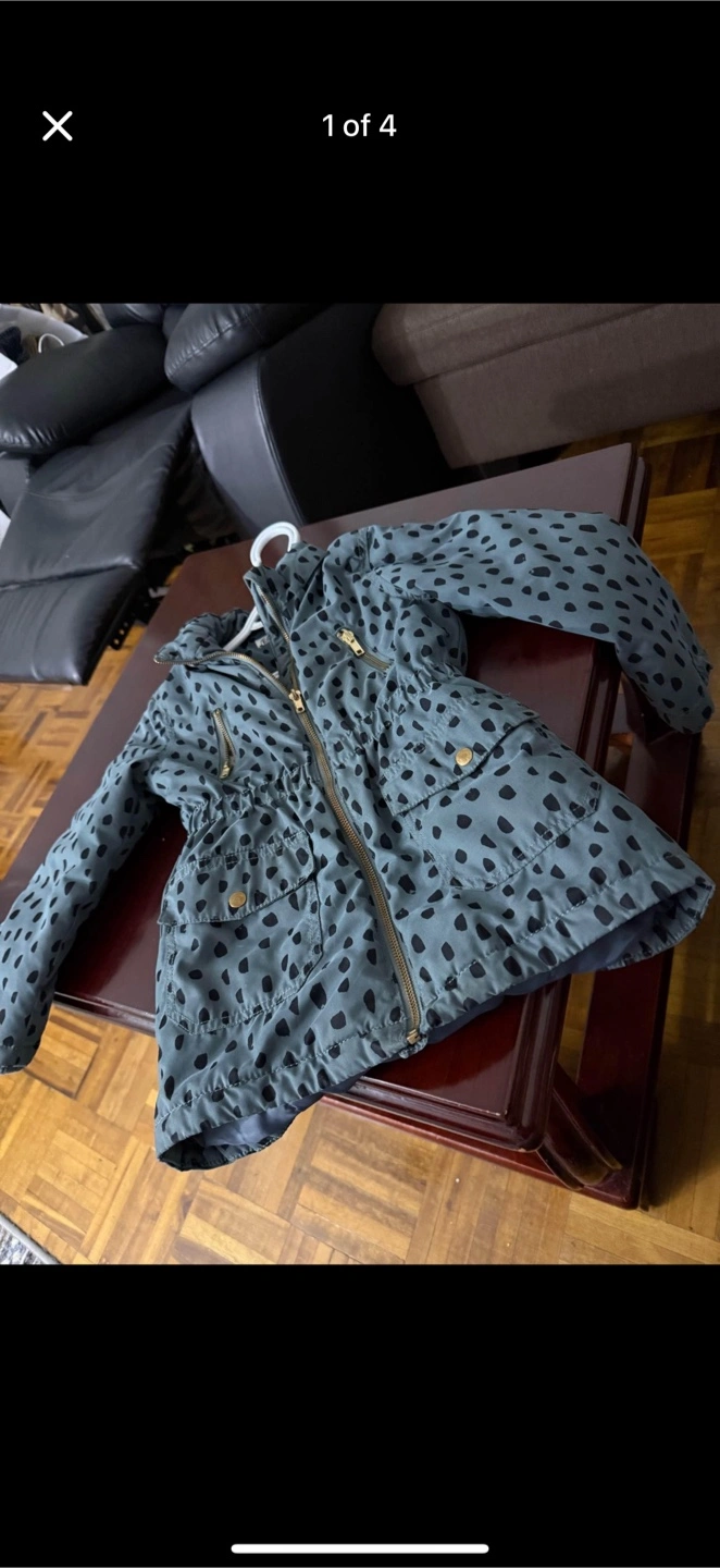 Selling a cute girls' puffer jacket with a fun spotted design! It's in great condition and perfect for keeping your little one warm and stylish during the cooler months