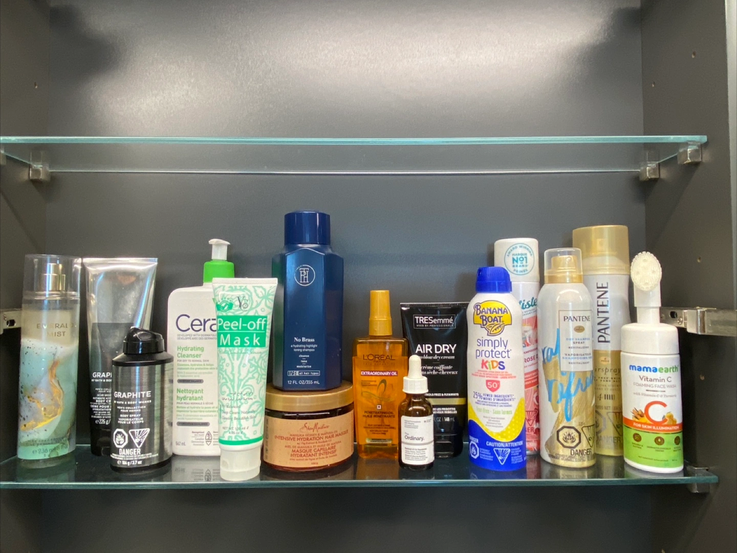 Some items are almost full, and others are halfway used.