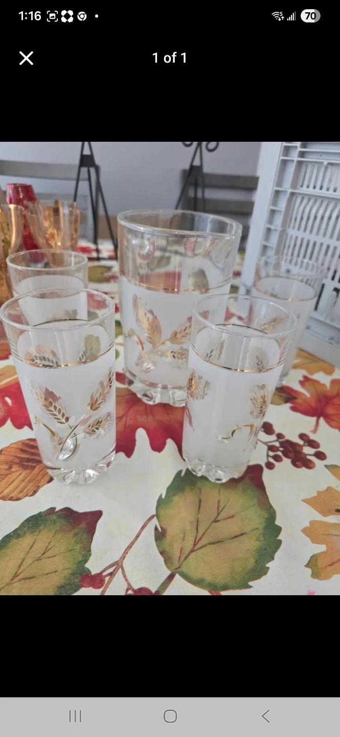 This set includes five frosted glass tumblers featuring a delicate gold wheat stalk design. They're perfect for serving beverages at gatherings or for everyday use.