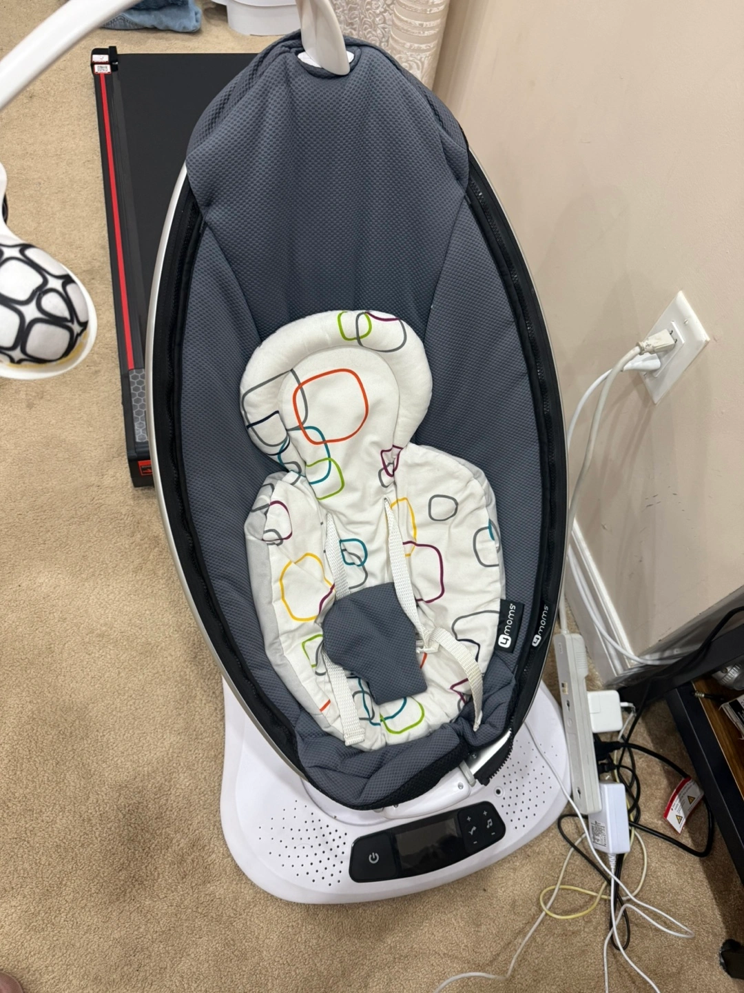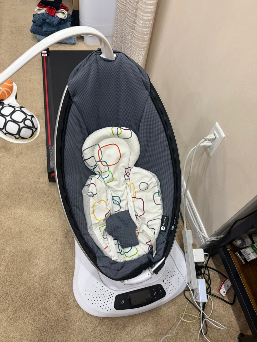 Selling a 4moms MamaRoo baby swing. It is in great condition and ready for a new home! It has multiple motions and speeds to soothe your little one. Also includes the mobile with toys to keep baby entertained