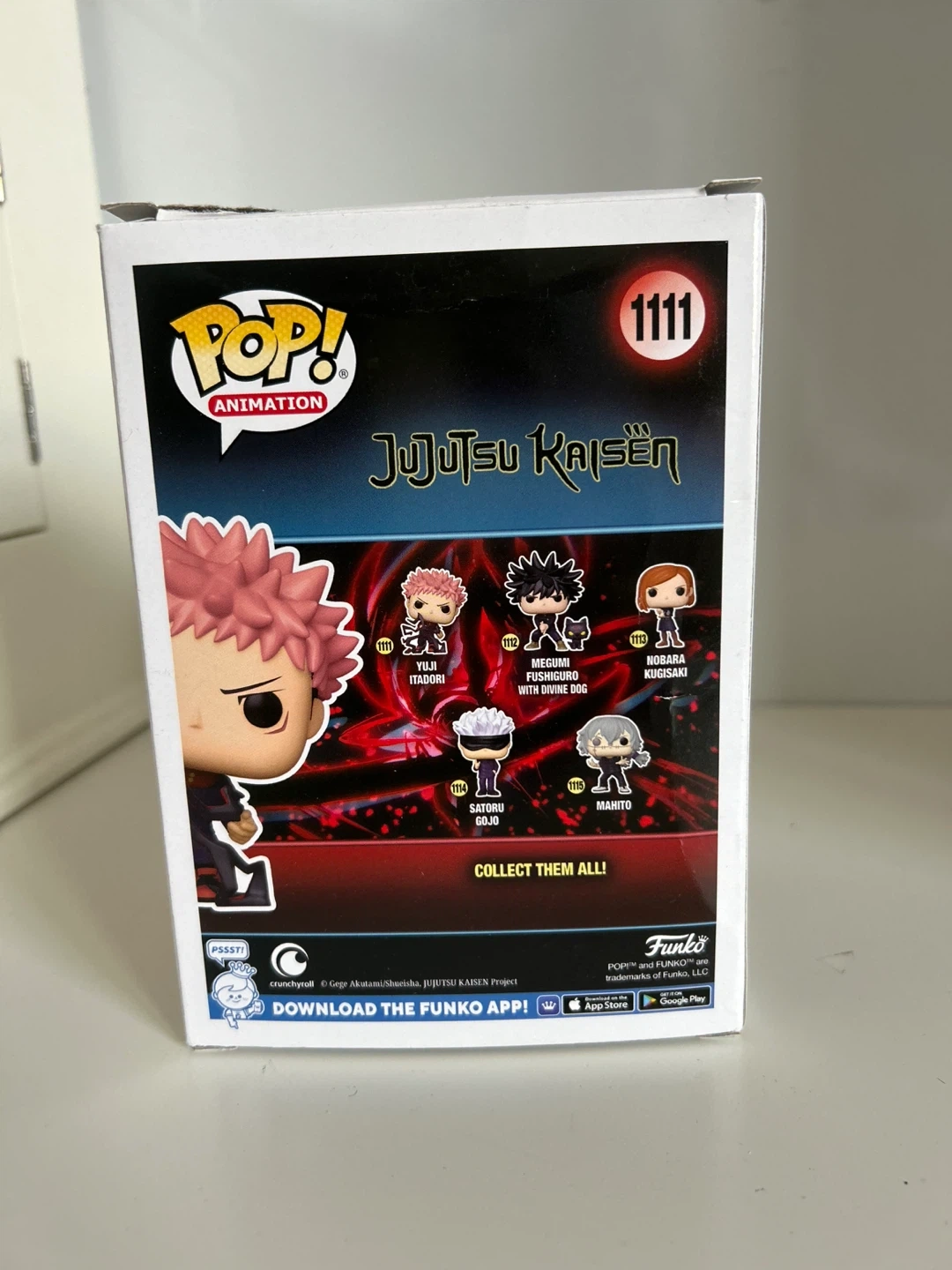 It's a Funko Pop! Animation vinyl figure of Yuji Itadori from Jujutsu Kaisen. This collectible is number 1111 in the series. It comes in its original box.