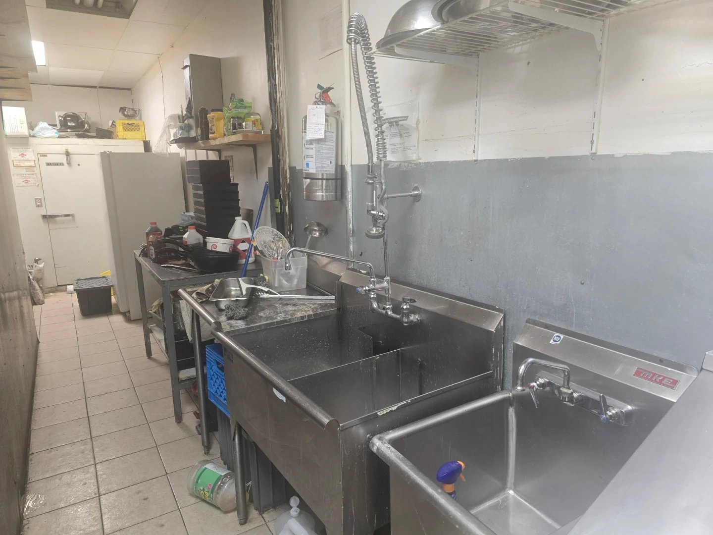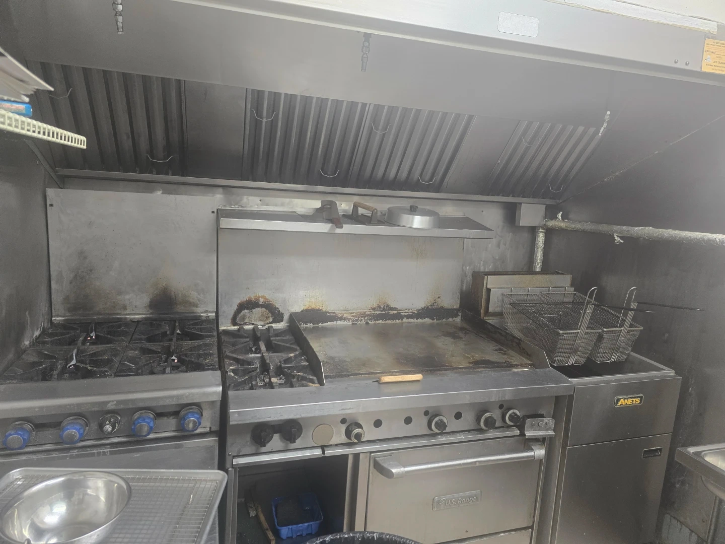 Ice machine , walkin cooler , stainless steel tables , prep coolers , tables and chairs , blenders , plates , ranges , flattops etc.