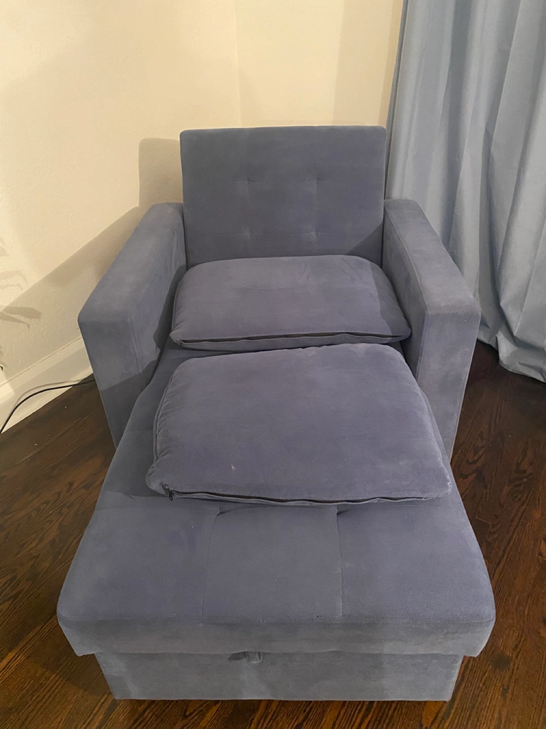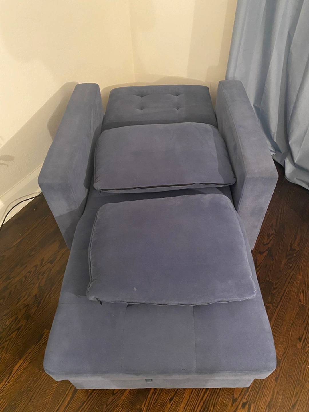 Blue Armchair Sleeper Bed with Storage