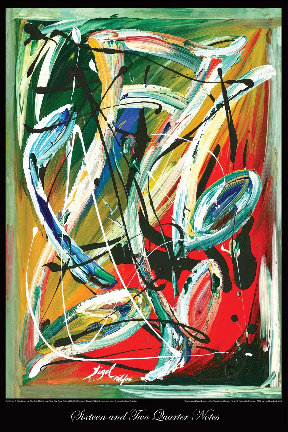 Selling a poster titled 'Sixteen and Two Quarter Notes'. This piece is 16 x 20 and was painted in February 2006 by Ligel Lambert, MFA