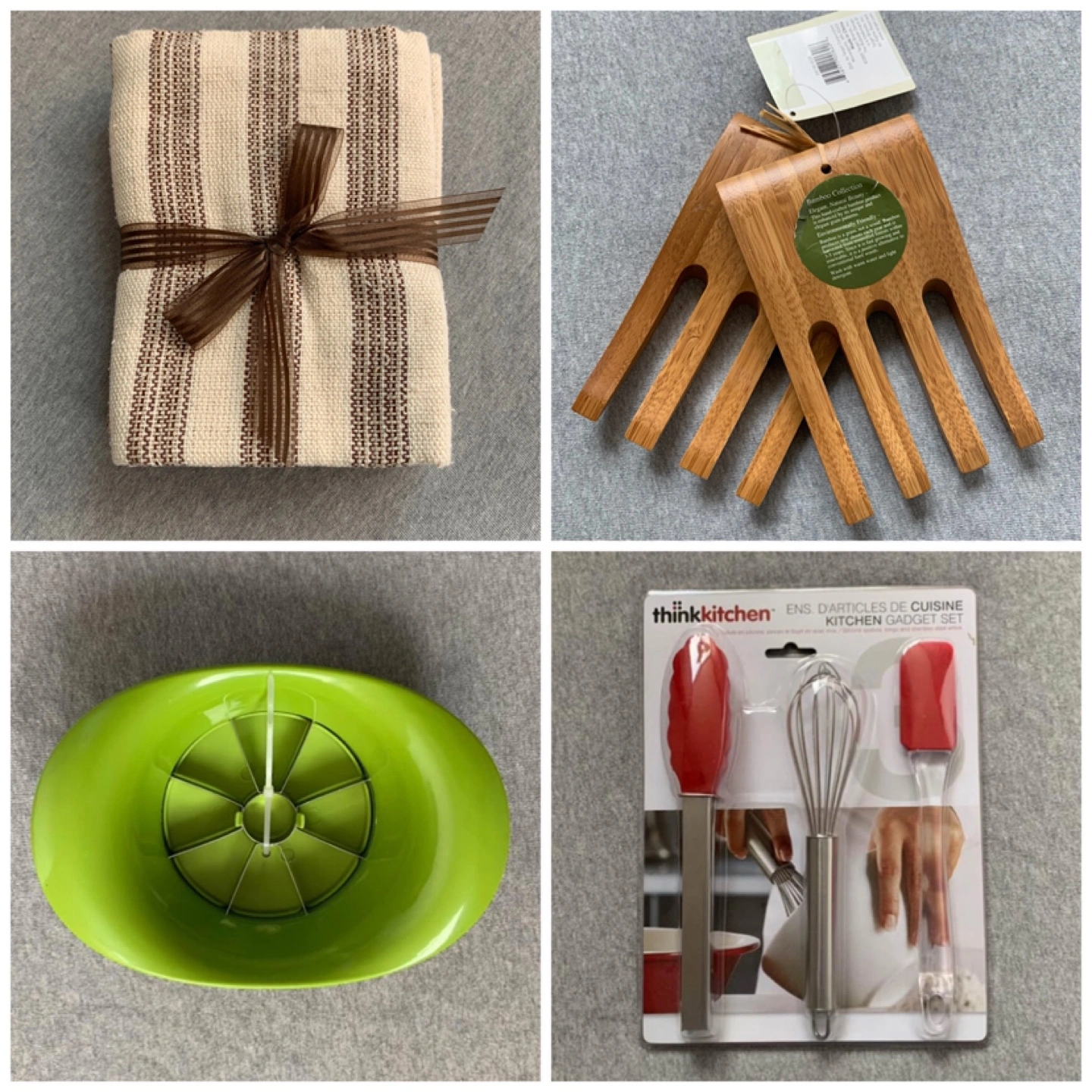 New, unopened, 3-piece set. Includes a whisk, tongs, and spatula.