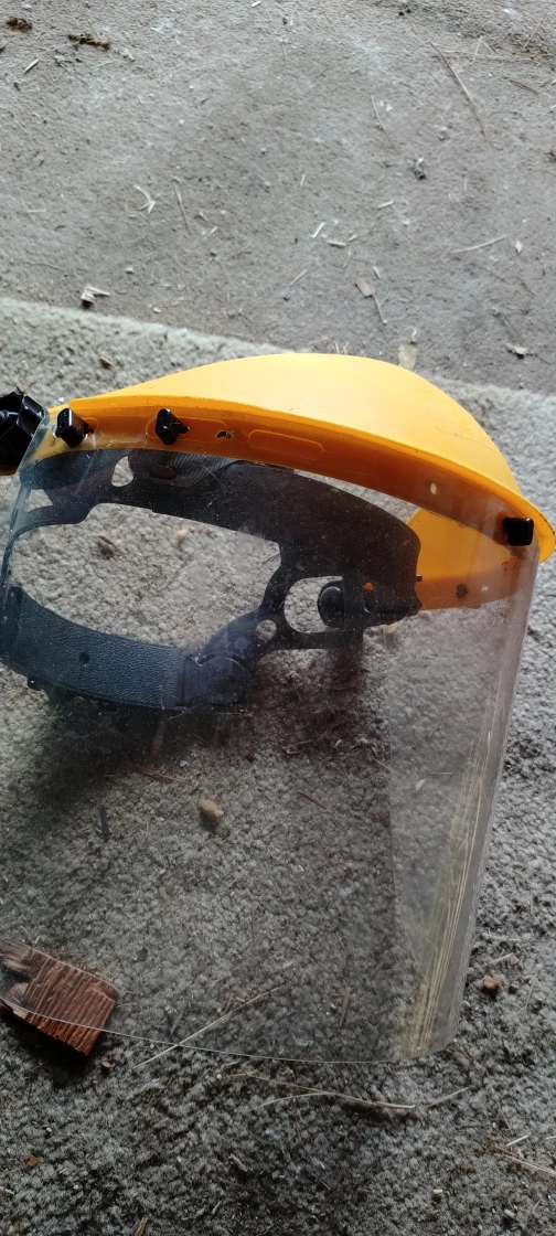Selling a yellow face shield. It has a clear plastic shield and a black adjustable head strap. Perfect for various tasks requiring face protection! I bought it for my dad I don't even think he wore it once