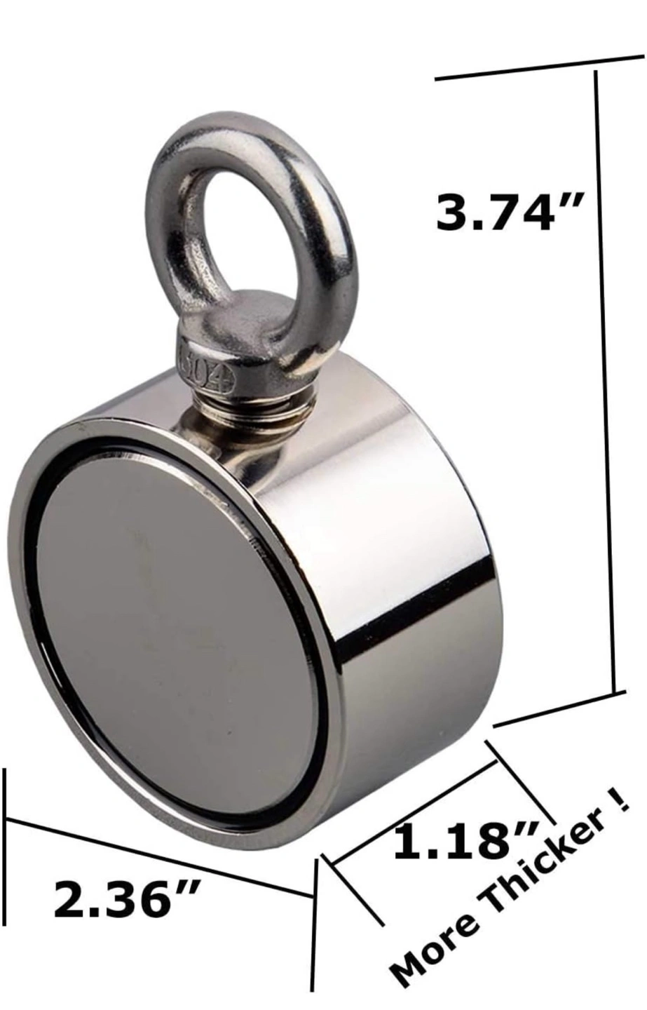 Get ready for some magnet fishing fun with this kit! It includes a strong magnet, durable nylon rope, and a pair of gloves to protect your hands. The rope is 50 feet long and made of high-strength nylon fibre. The magnet measures approximately 3.74" x 2.36".