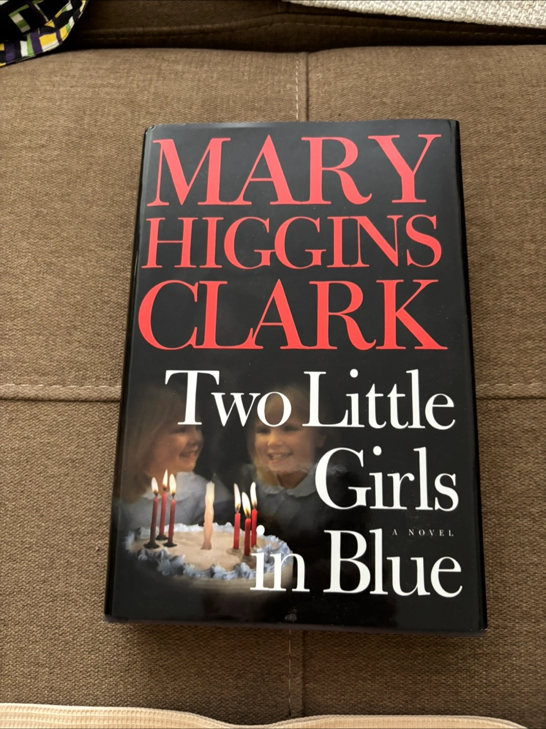 Selling a hardcover edition of "Two Little Girls in Blue" by Mary Higgins Clark. It's a novel by a well-known writer!
