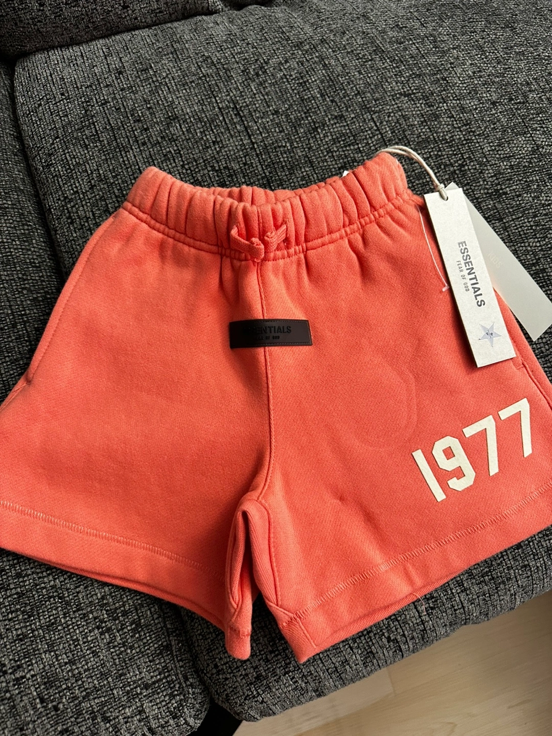 These cute Essentials Fear of God shorts are in great condition! They're a vibrant coral colour and size 4/5. Perfect for your little one!