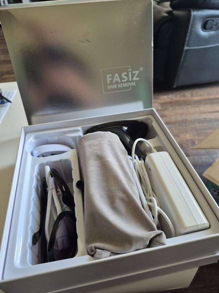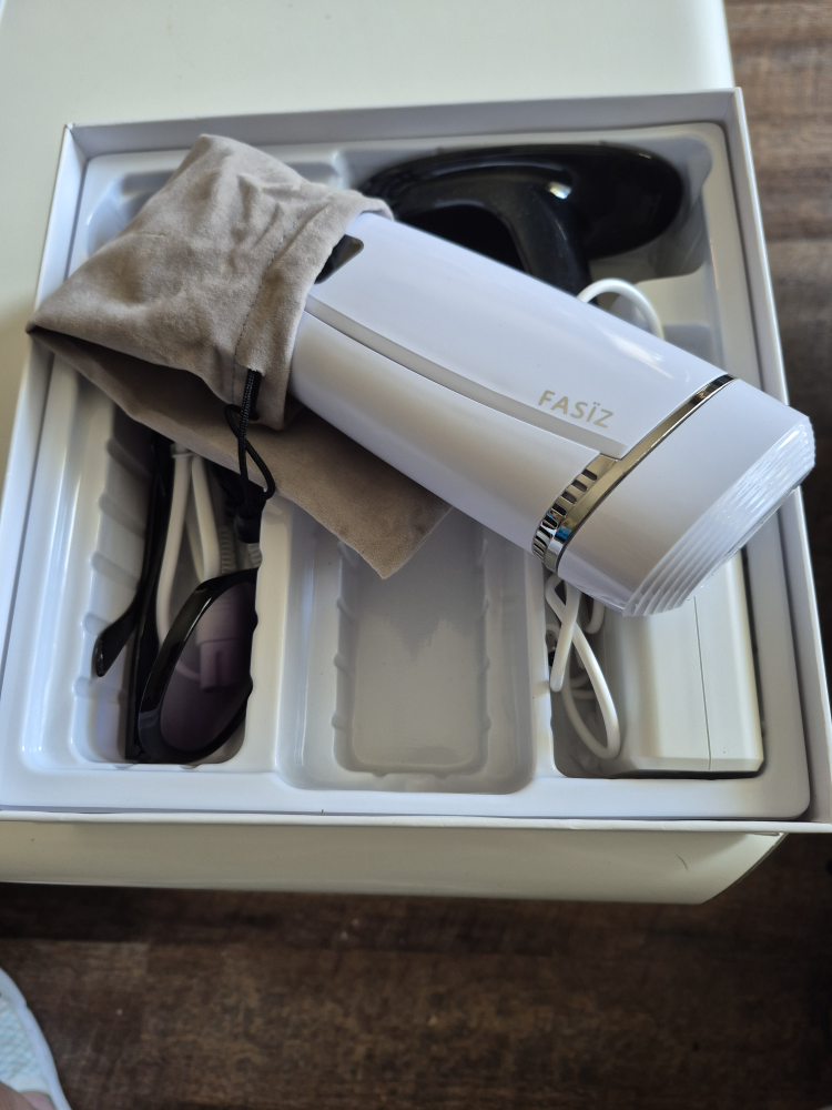 Selling a FASIZ hair removal system that's in excellent condition! It comes with all the original components, including the device, power adapter, safety glasses, and a convenient storage bag. The system is designed for easy and effective hair removal in the comfort of your own home. The box is included!